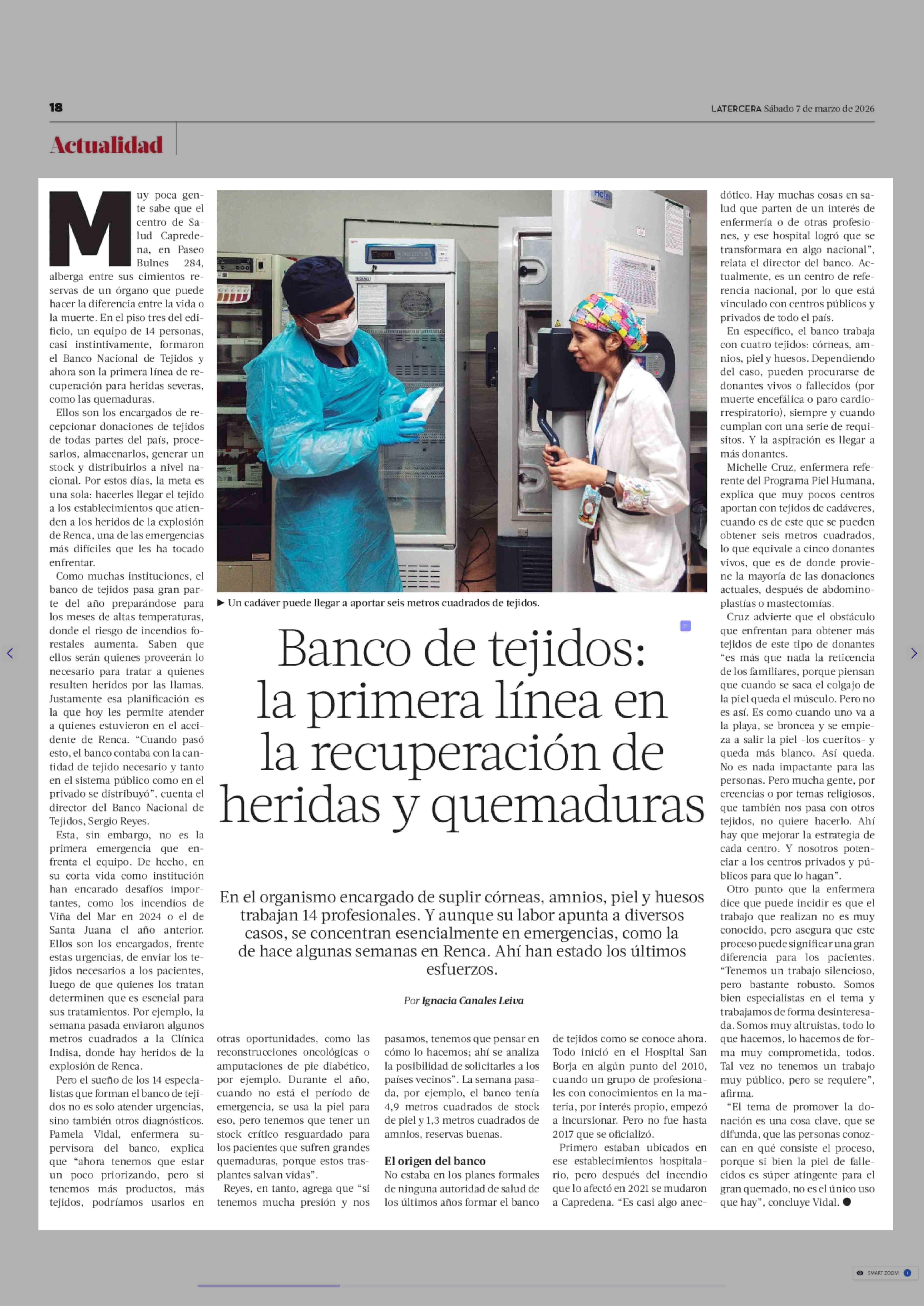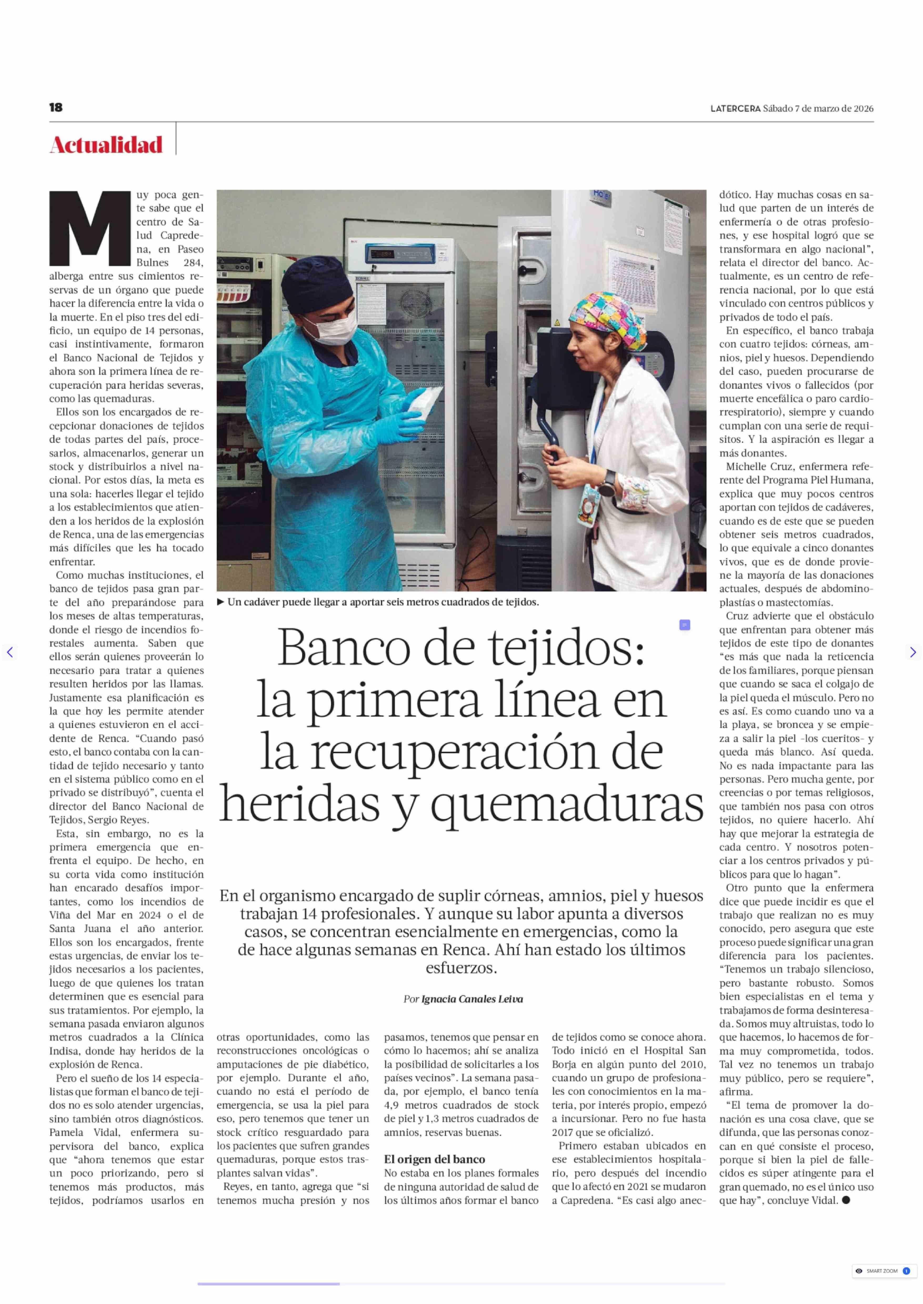 Banco de tejidos: la primera línea en la recuperación de heridas y quemaduras 07-03-2026 La Tercera |