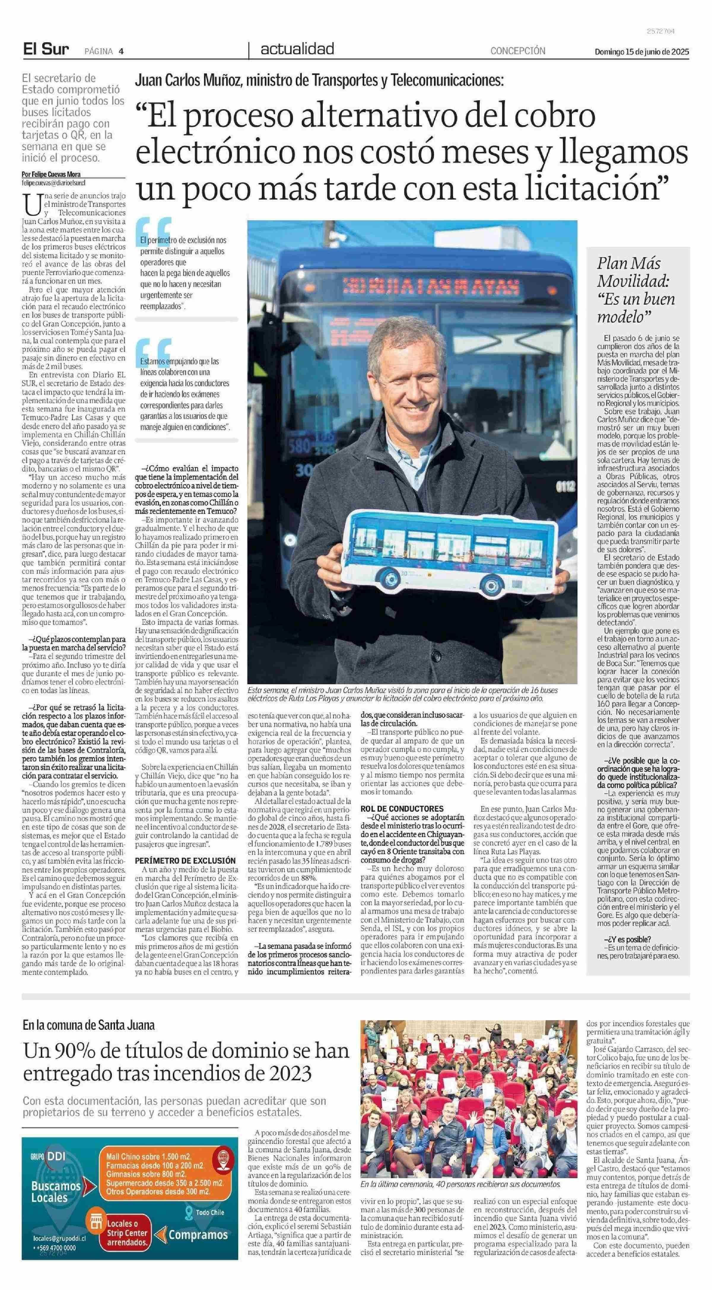 "El proceso alternativo del cobro un poco más tarde con esta licitación" electrónico nos costó meses y llegamos 15-06-2025 El Sur |