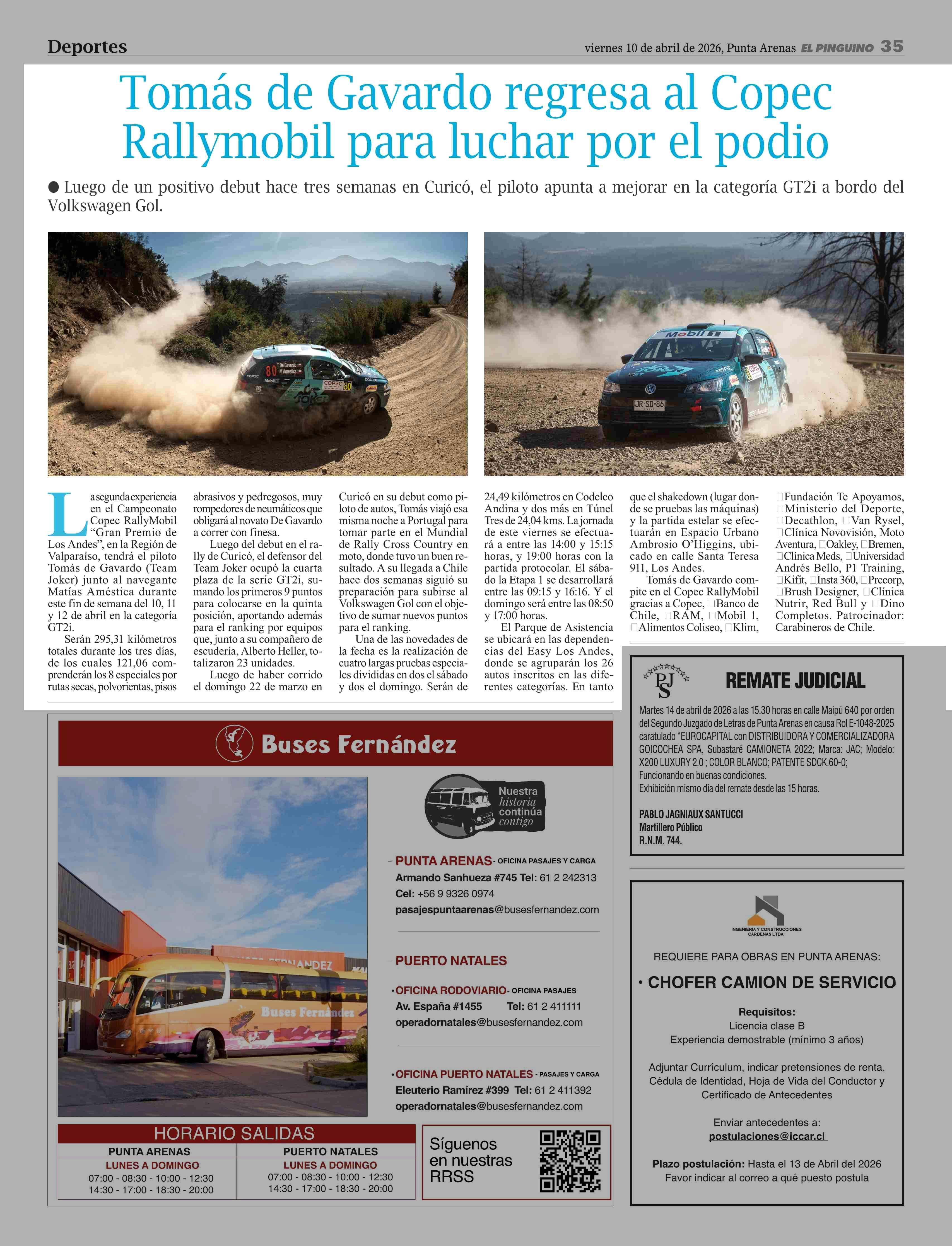 Tomás de Gavardo regresa al Copec Rallymobil para luchar por el podio 10-04-2026 El Pingüino |
