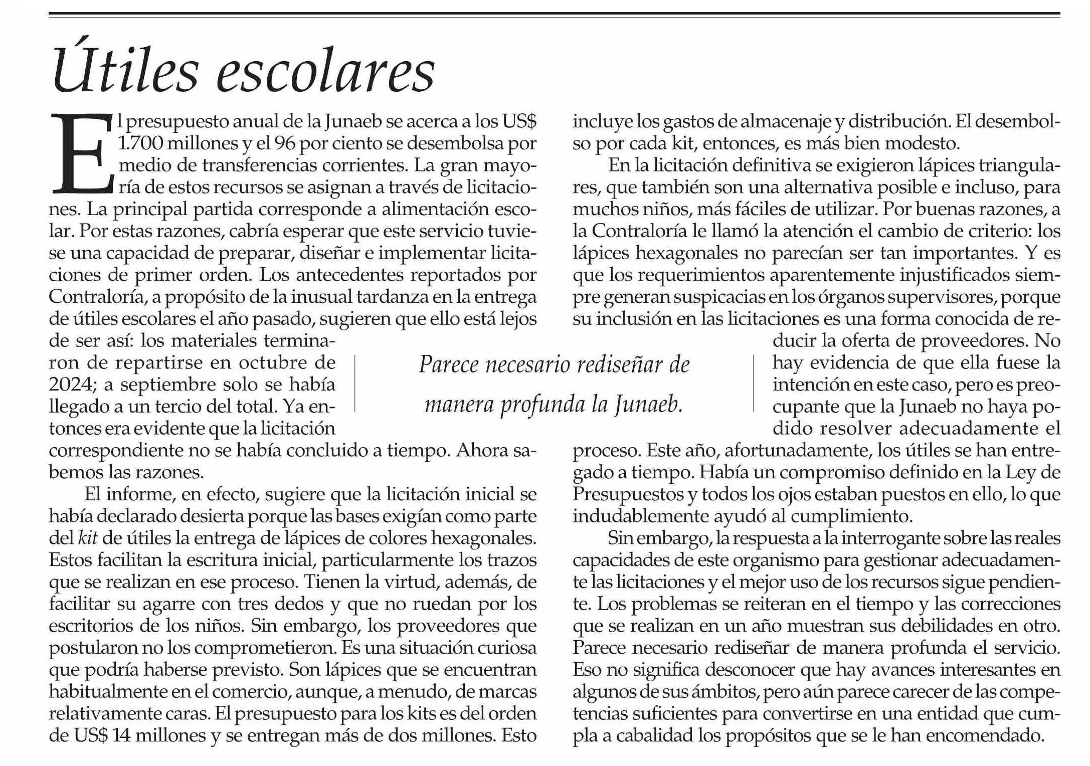 EDITORIAL: Útiles escolares 21-06-2025 El Mercurio |