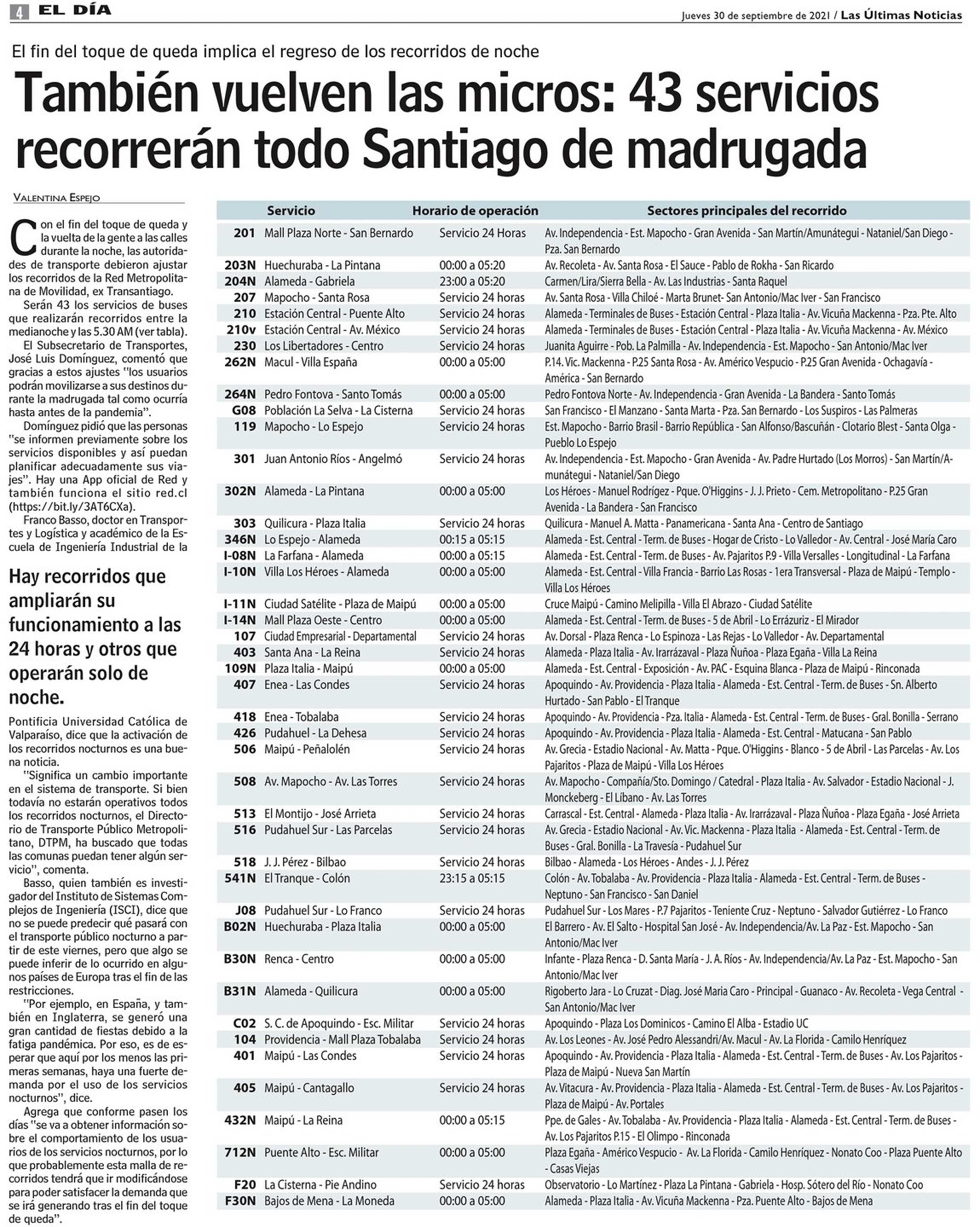 También vuelven las micros: 43 servicios recorrerán todo Santiago de madrugada 30-09-2021 Las Últimas Noticias |