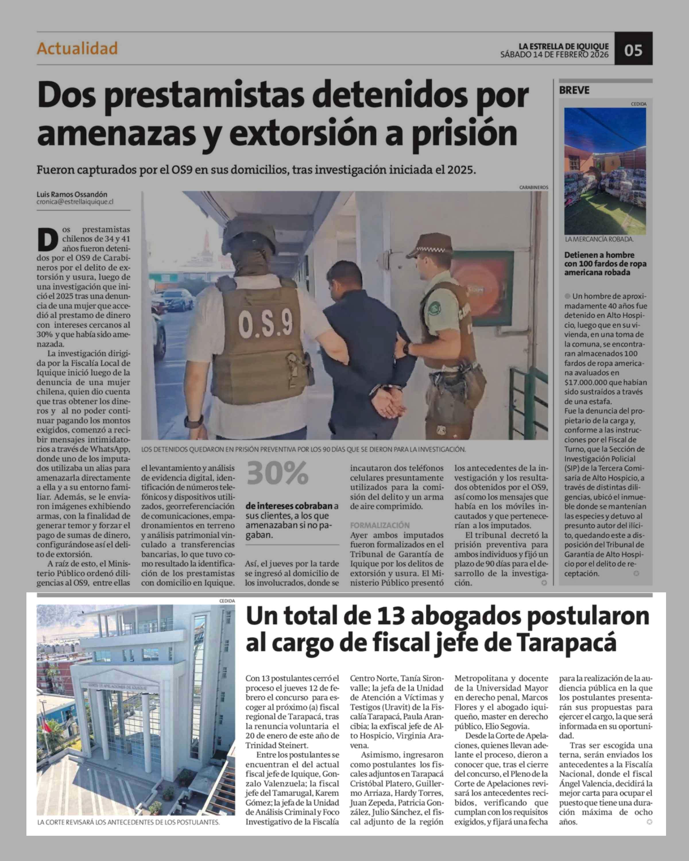Un total de 13 abogados postularon al cargo de fiscal jefe de Tarapacá 14-02-2026 La Estrella de Iquique |