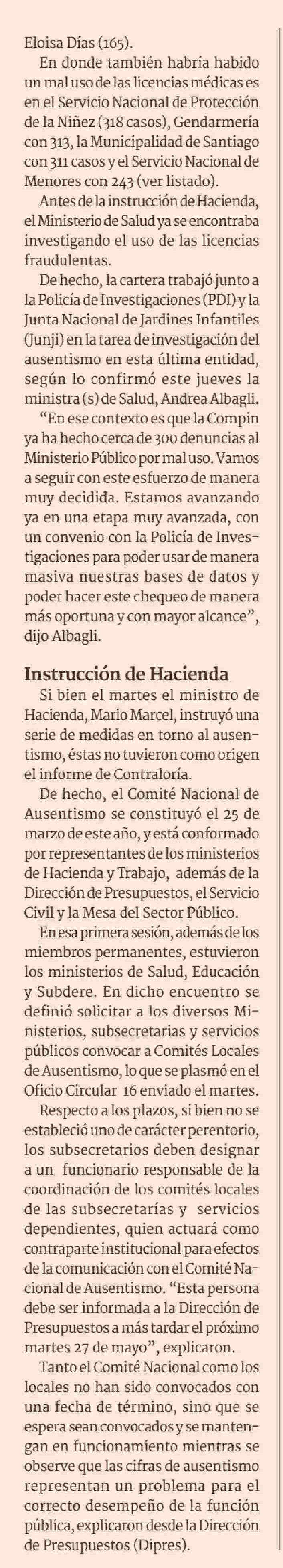 BancoEstado, Codelco y Metro se suman a hospitales entre los 50 servicios con más licencias médicas usadas para viajar 23-05-2025 Diario Financiero |