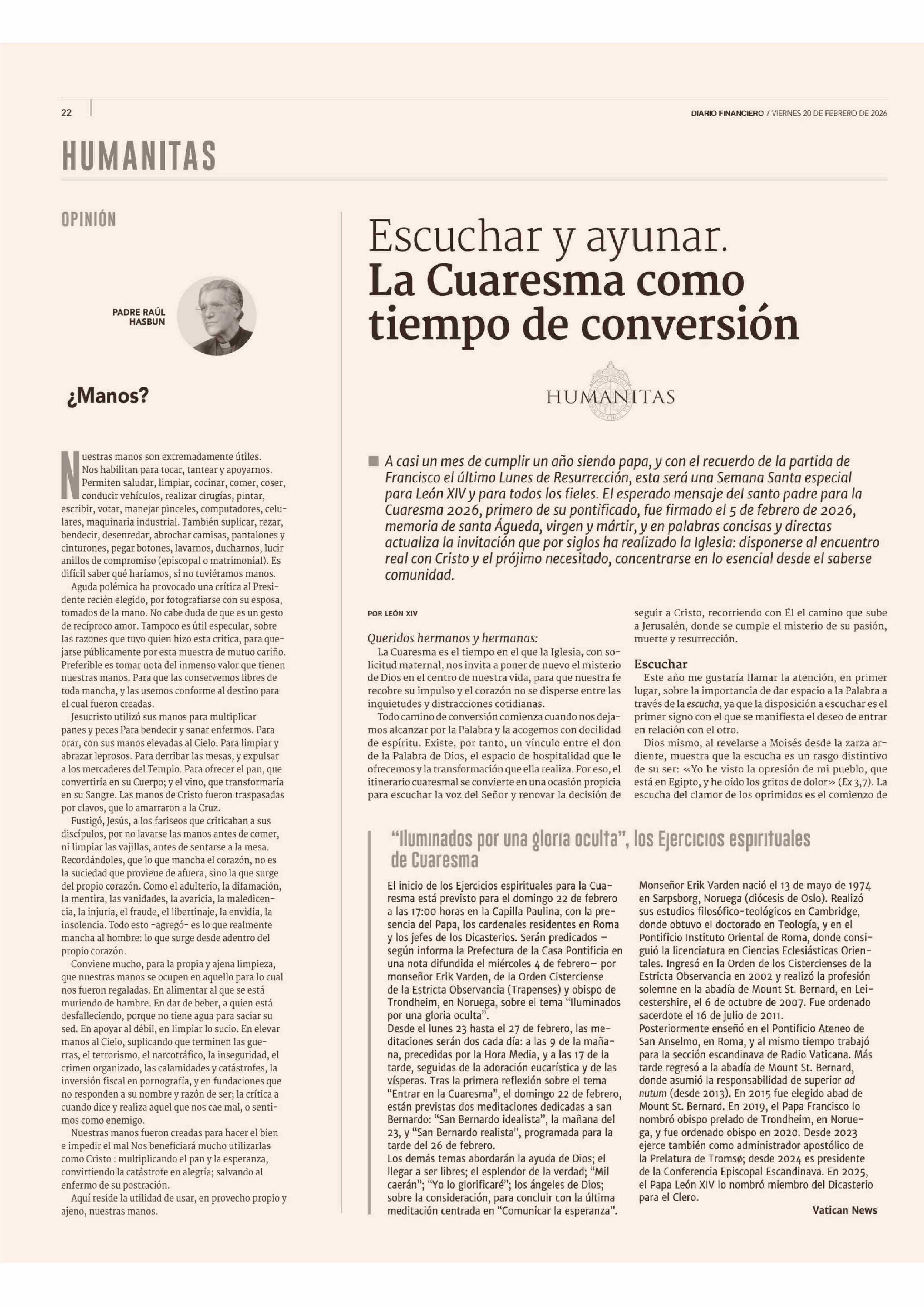 Escuchar y ayunar. La Cuaresma como tiempo de conversión