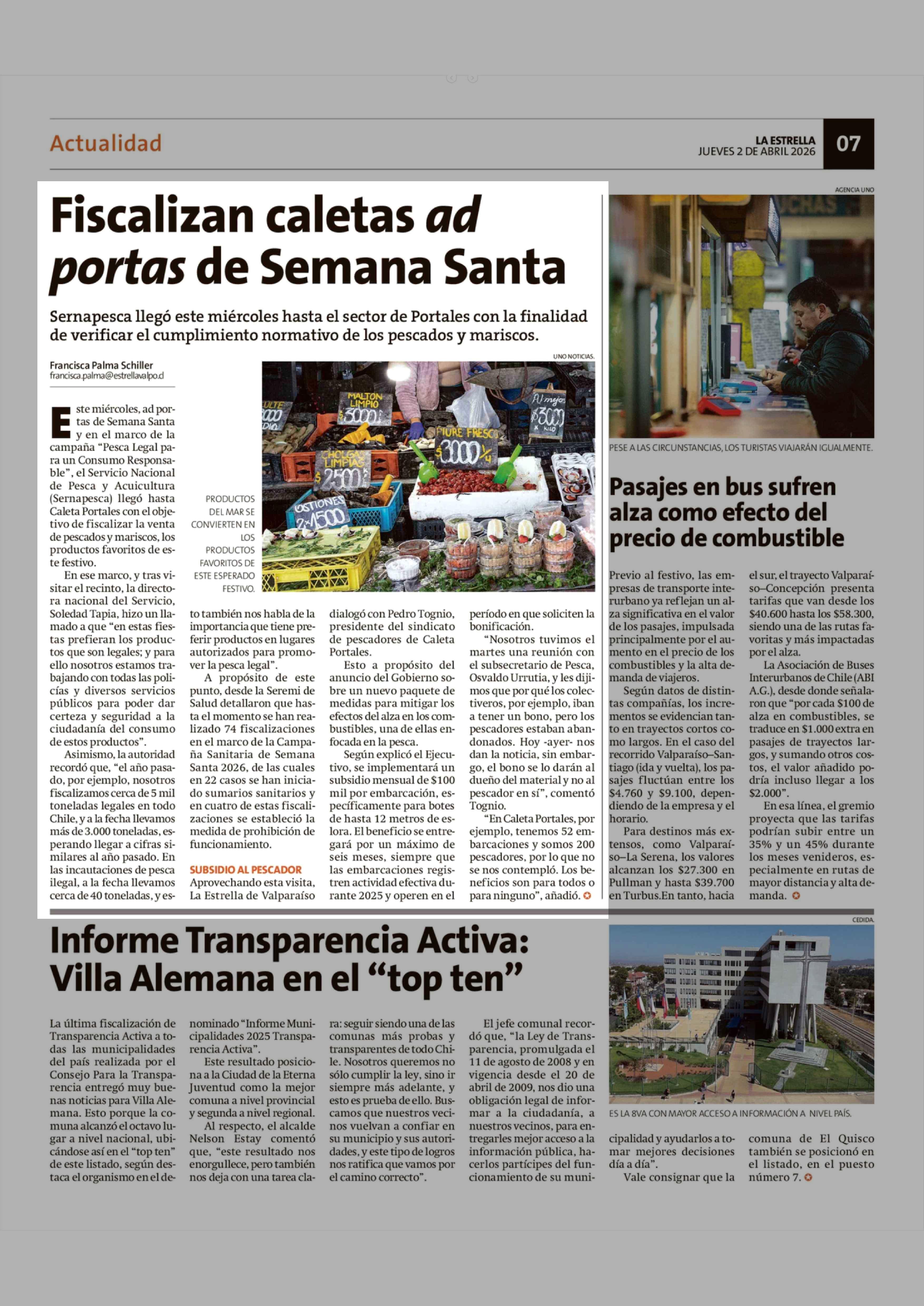 Fiscalizan caletas ad portas de Semana Santa 02-04-2026 La Estrella de Valparaíso |