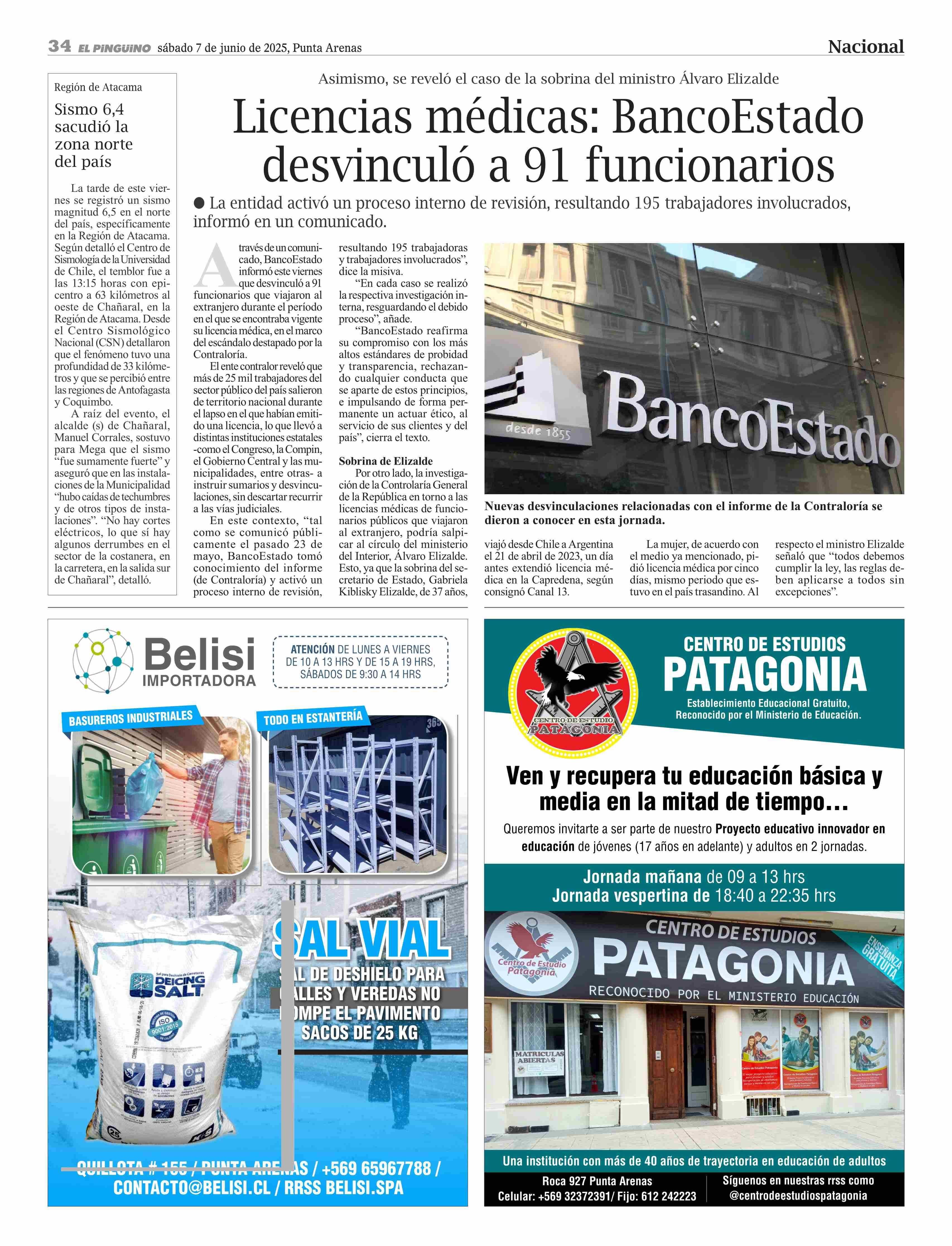 Licencias médicas: BancoEstado desvinculó a 91 funcionarios 07-06-2025 El Pingüino |