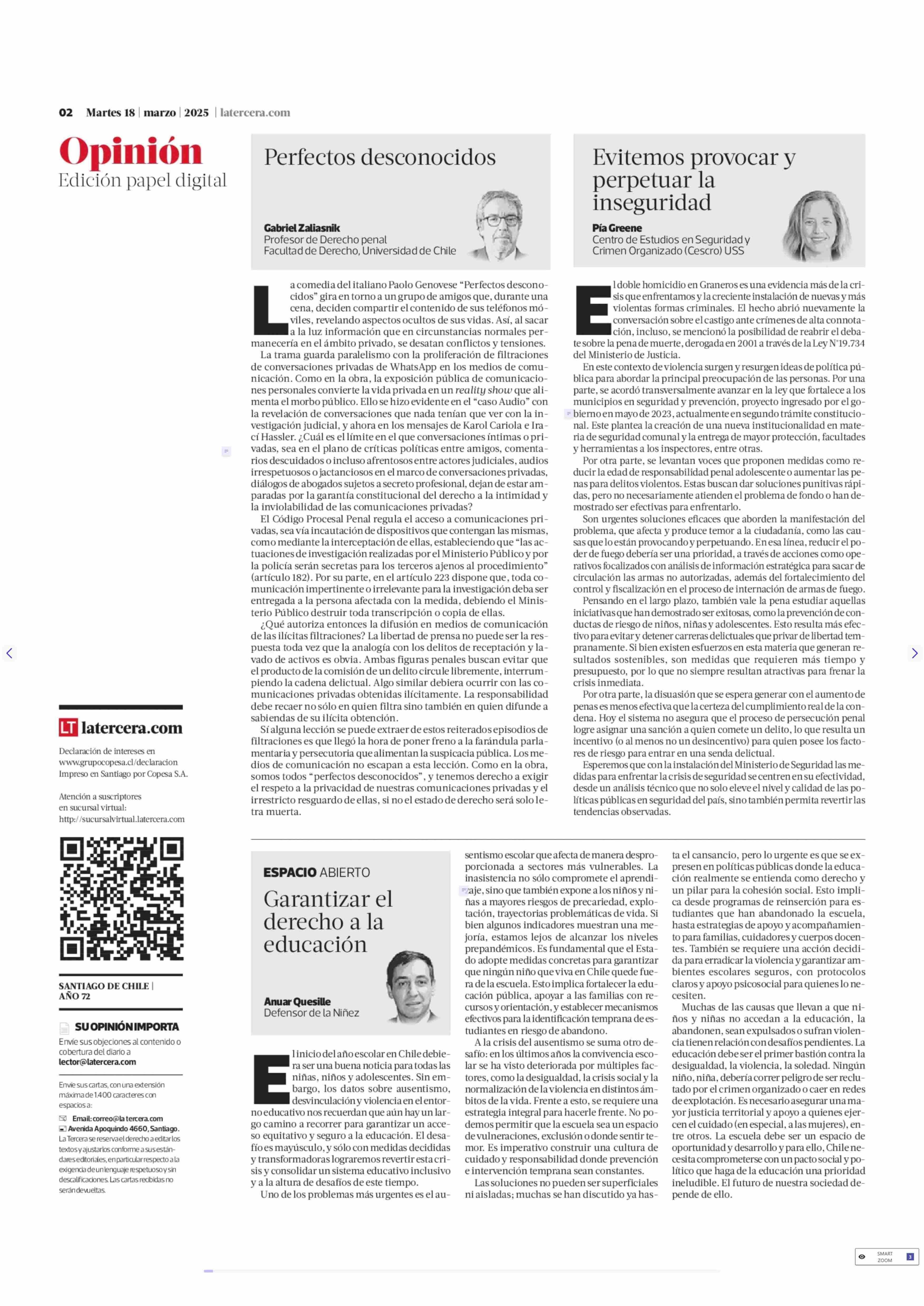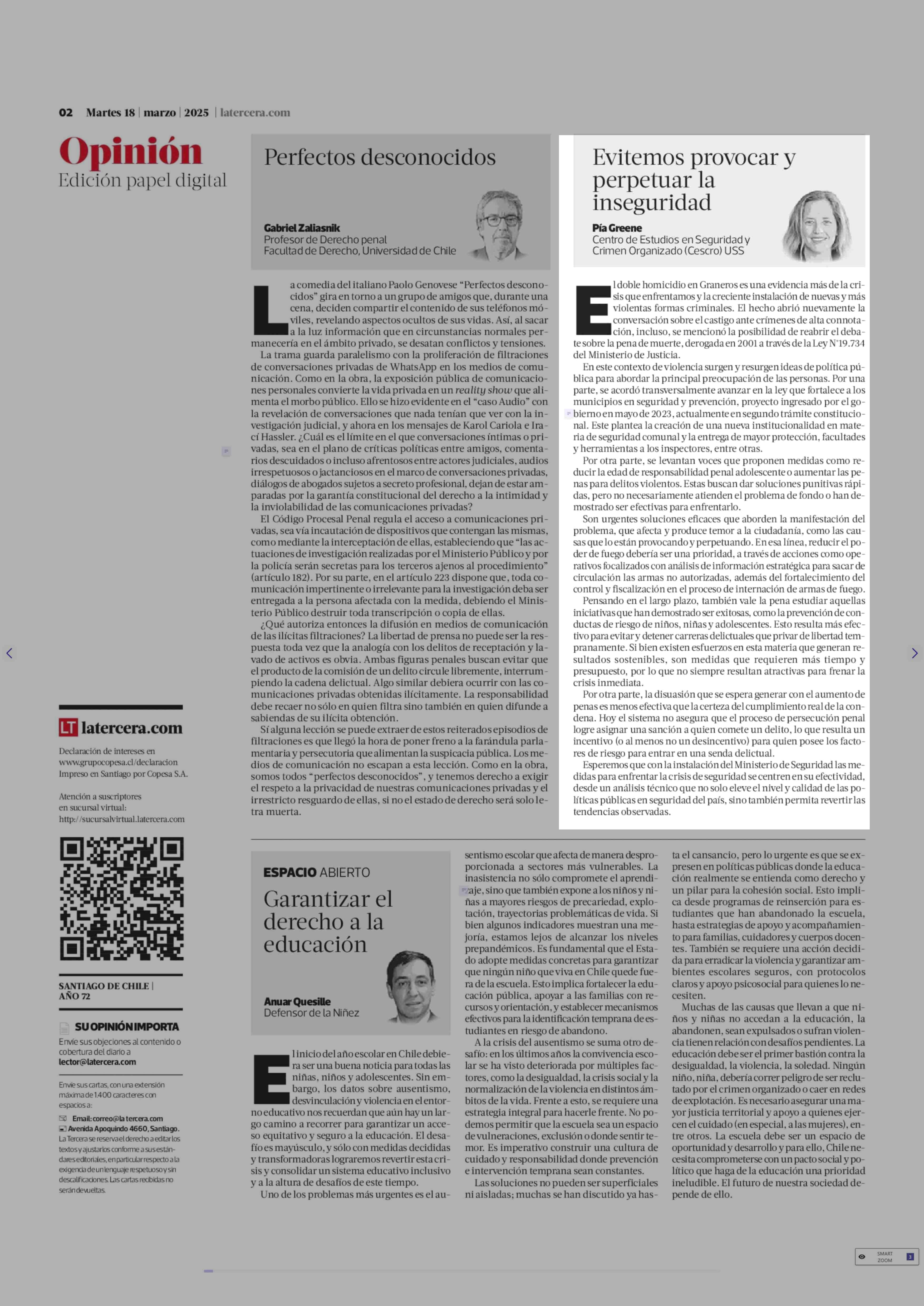 Columnas de Opinión: Evitemos provocar y perpetuar la inseguridad 18-03-2025 La Tercera |
