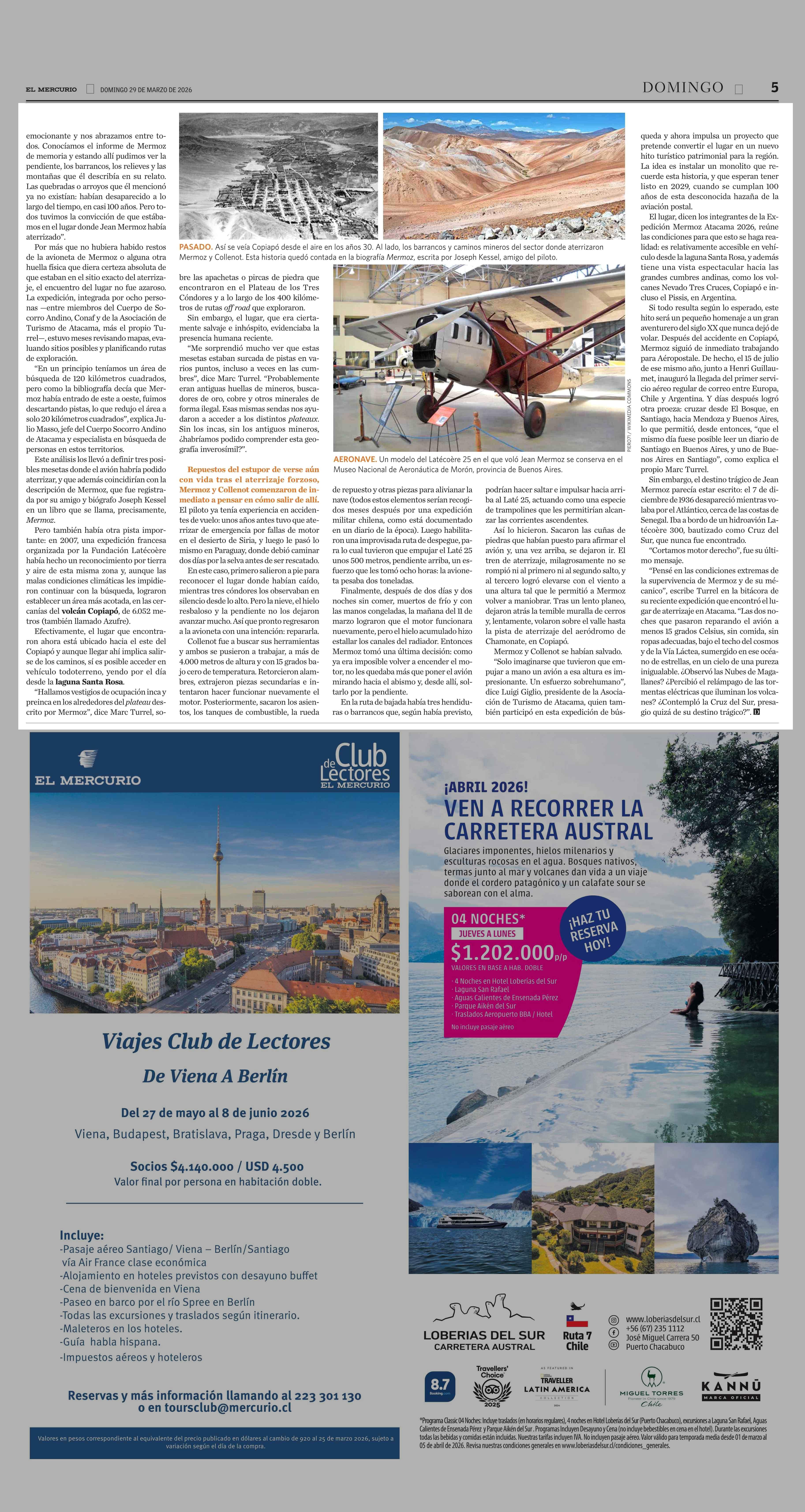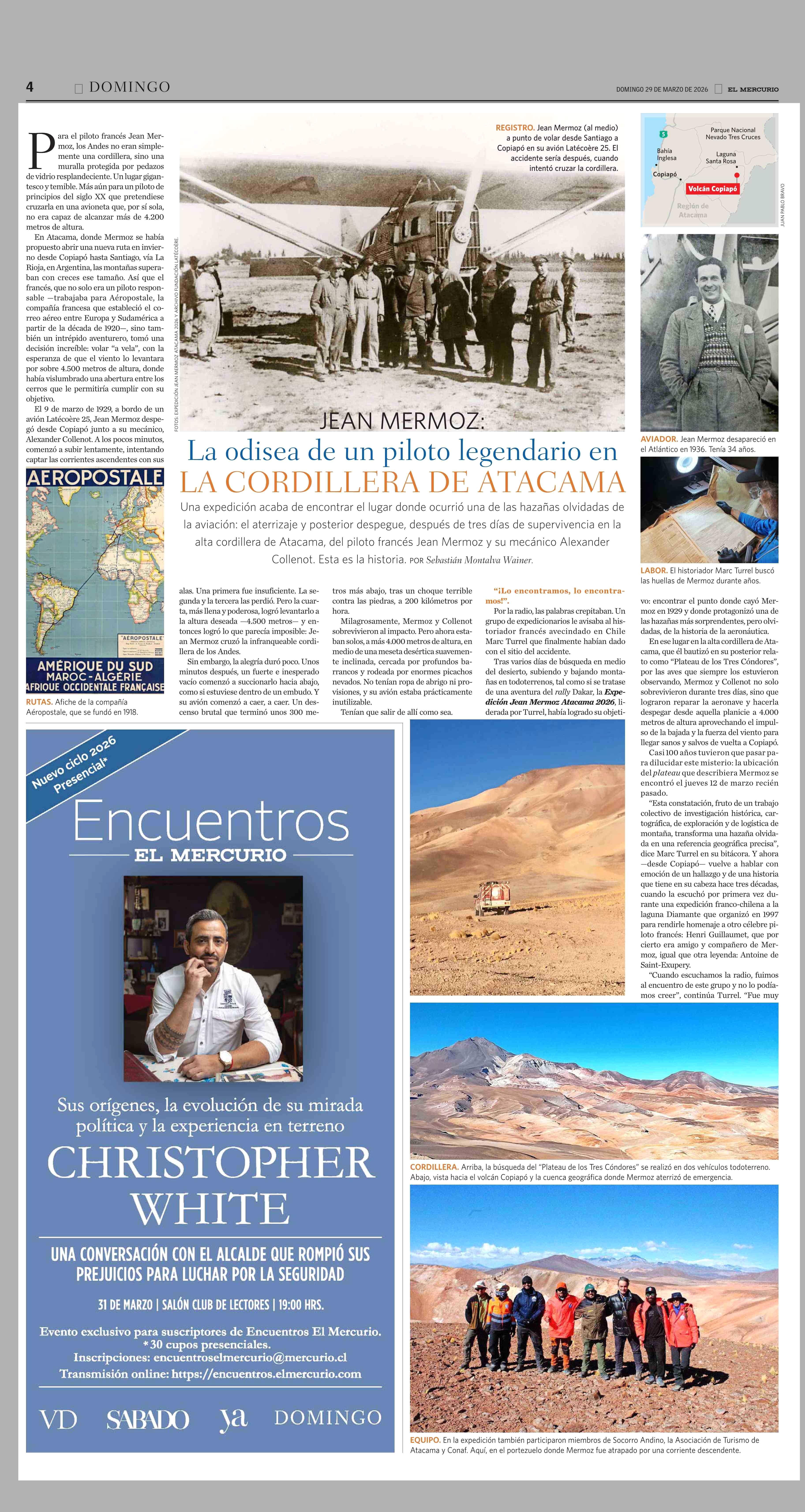 JEAN MERMOZ: La odisea de un piloto legendario en LA CORDILLERA DE ATACAMA 29-03-2026 El Mercurio |