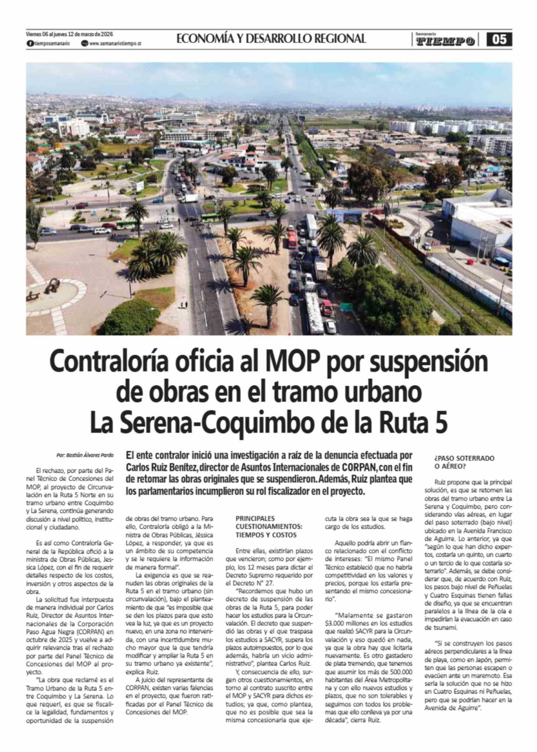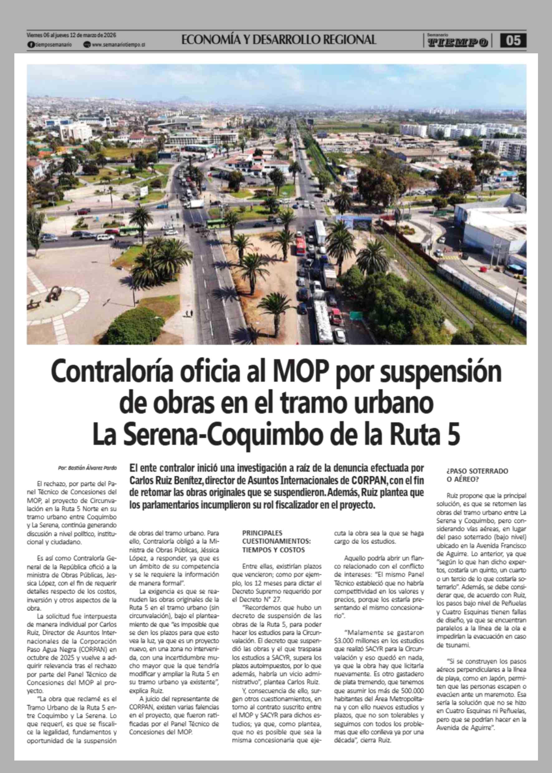 Título: Contraloría oficia al MOP por suspensión de obras en el tramo urbano La Serena-Coquimbo de la Ruta 5