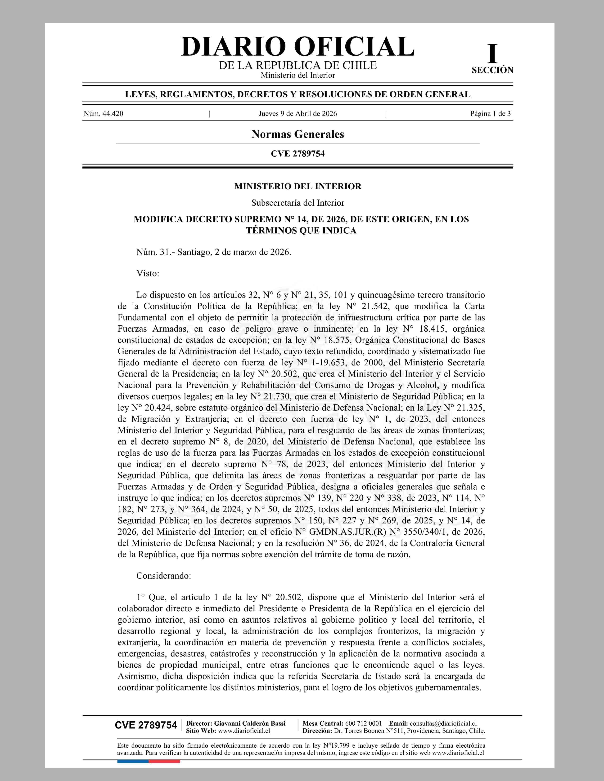 MINISTERIO DEL INTERIOR 09-04-2026 Diario Oficial Edición Electrónica |
