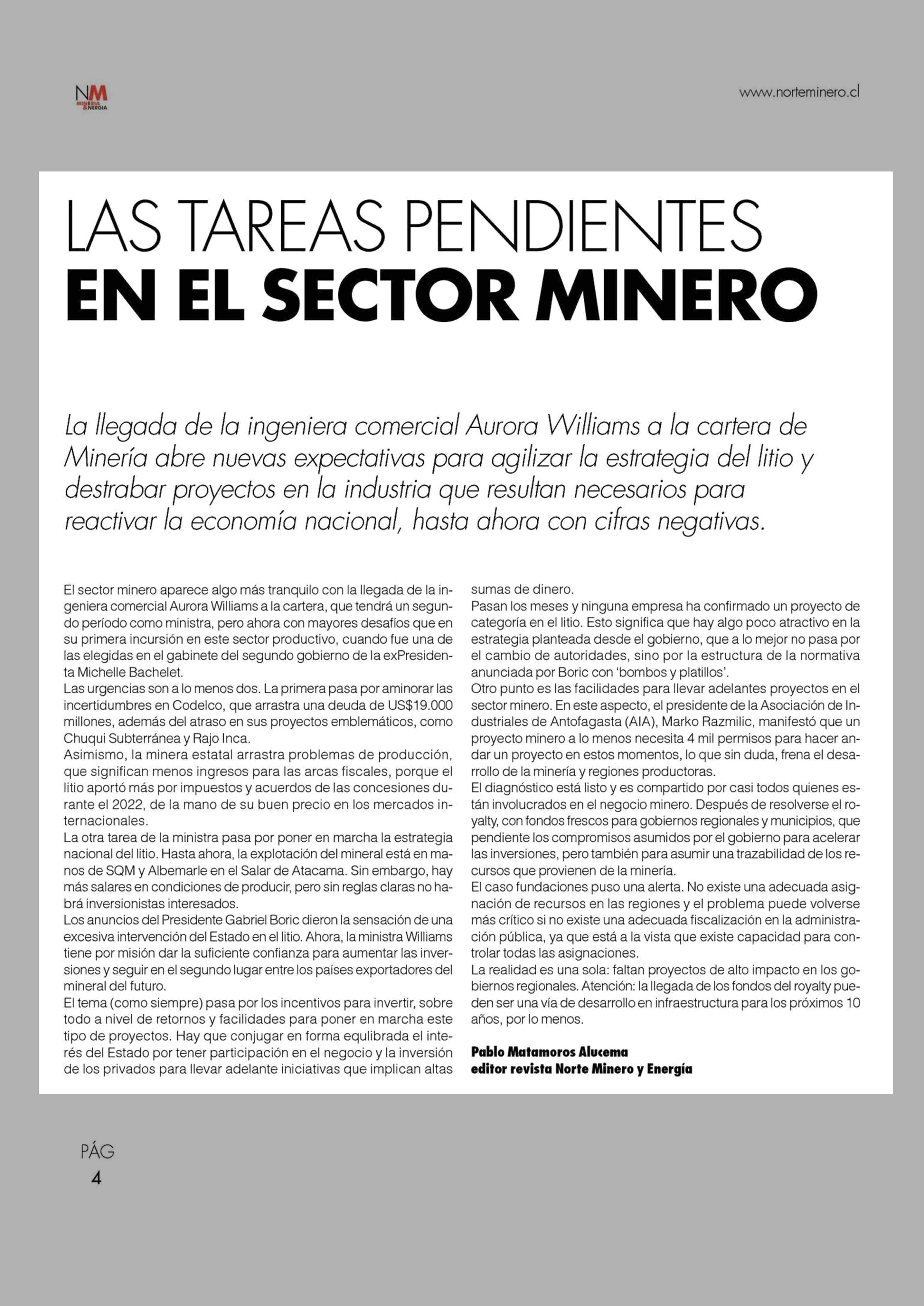 LAS TAREAS PENDIENTES EN EL SECTOR MINERO 22-09-2023 Revista Norte Minero - Regiones I, II y III |
