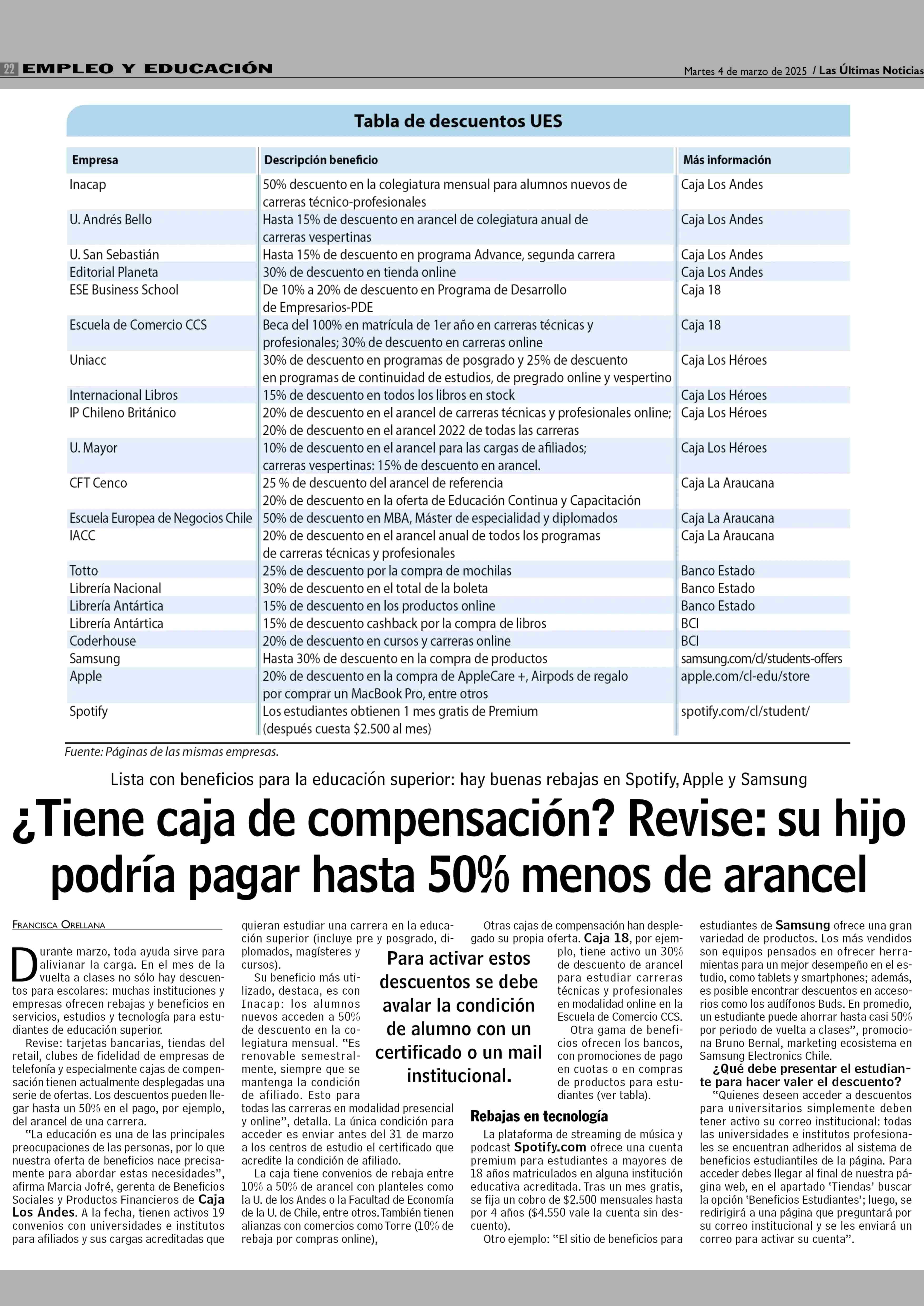 ¿Tiene caja de compensación? Revise: su hijo podría pagar hasta 50% menos de arancel 04-03-2025 Las Últimas Noticias |