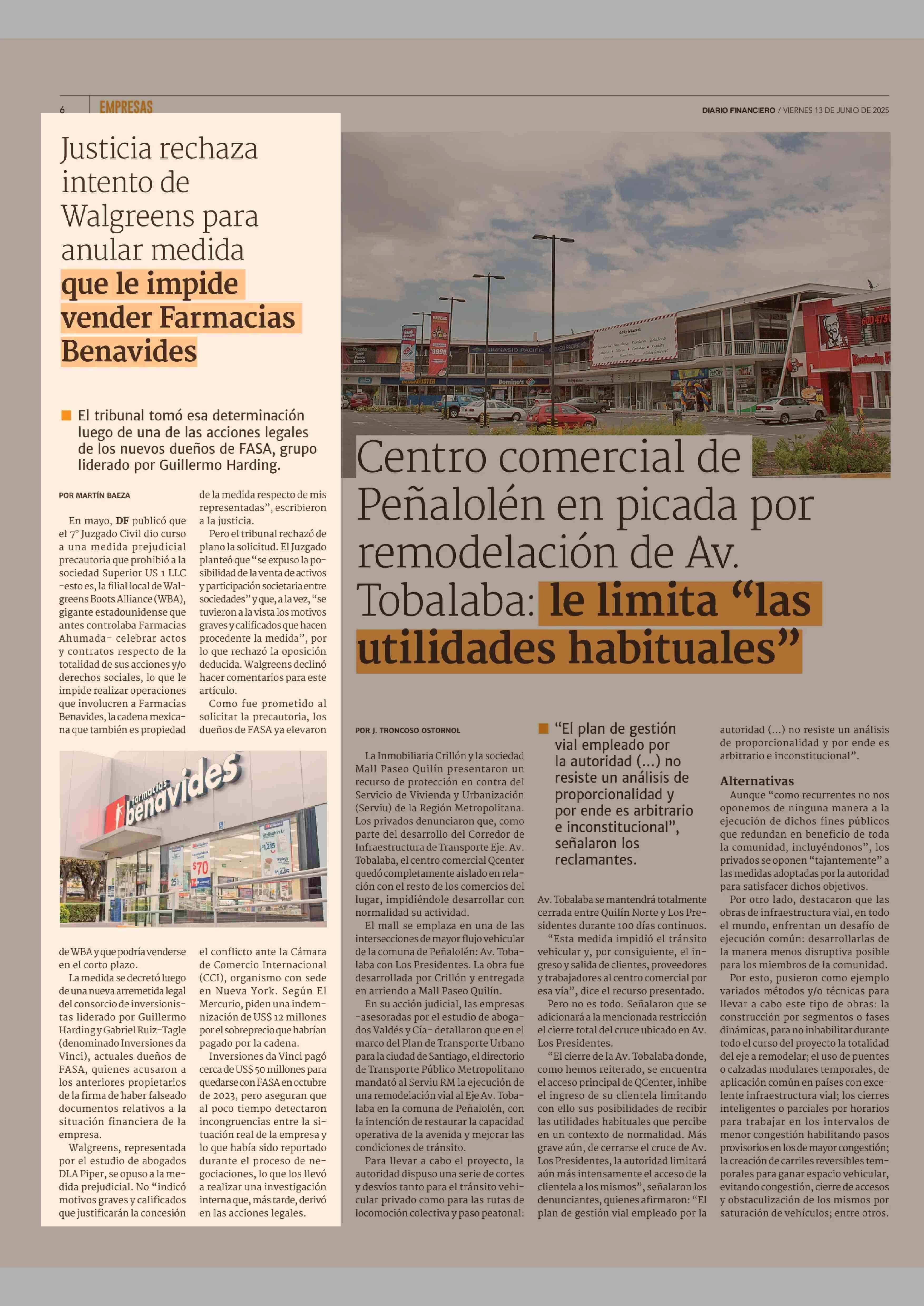 Justicia rechaza intento de Walgreens para anular medida que le impide vender Farmacias Benavides 13-06-2025 Diario Financiero |