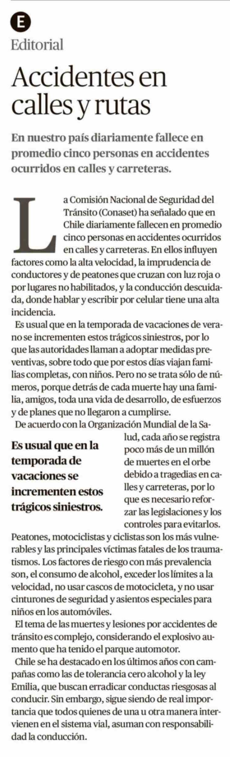 Editorial: Accidentes en calles y rutas 23-02-2026 El Austral de la Araucanía |