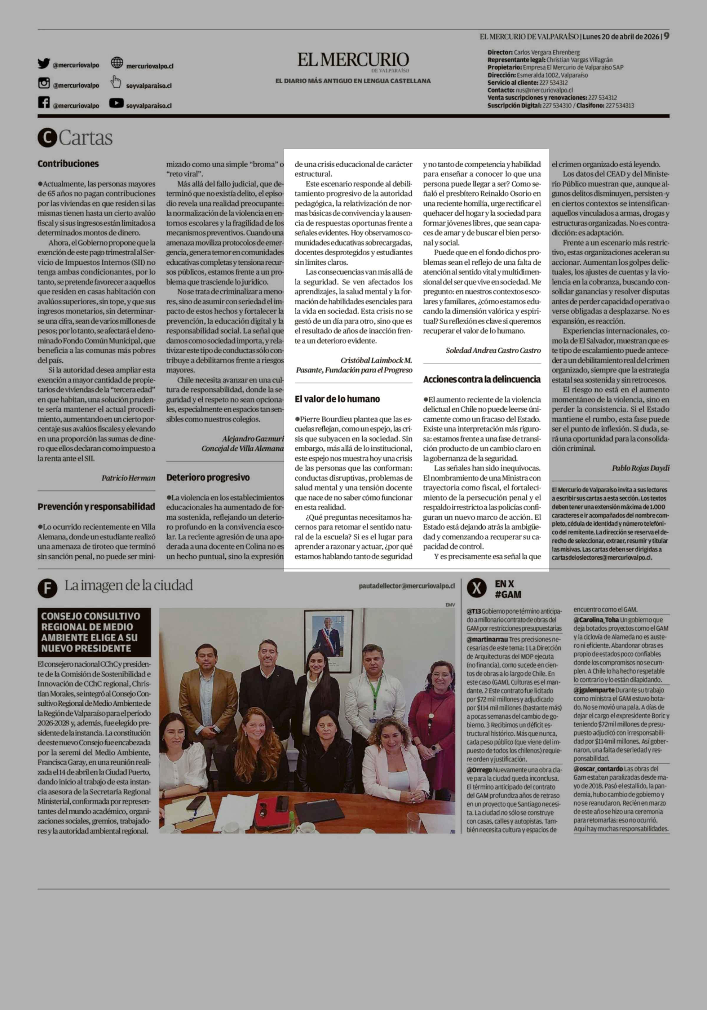 Cartas: El valor de lo humano 20-04-2026 El Mercurio de Valparaíso |