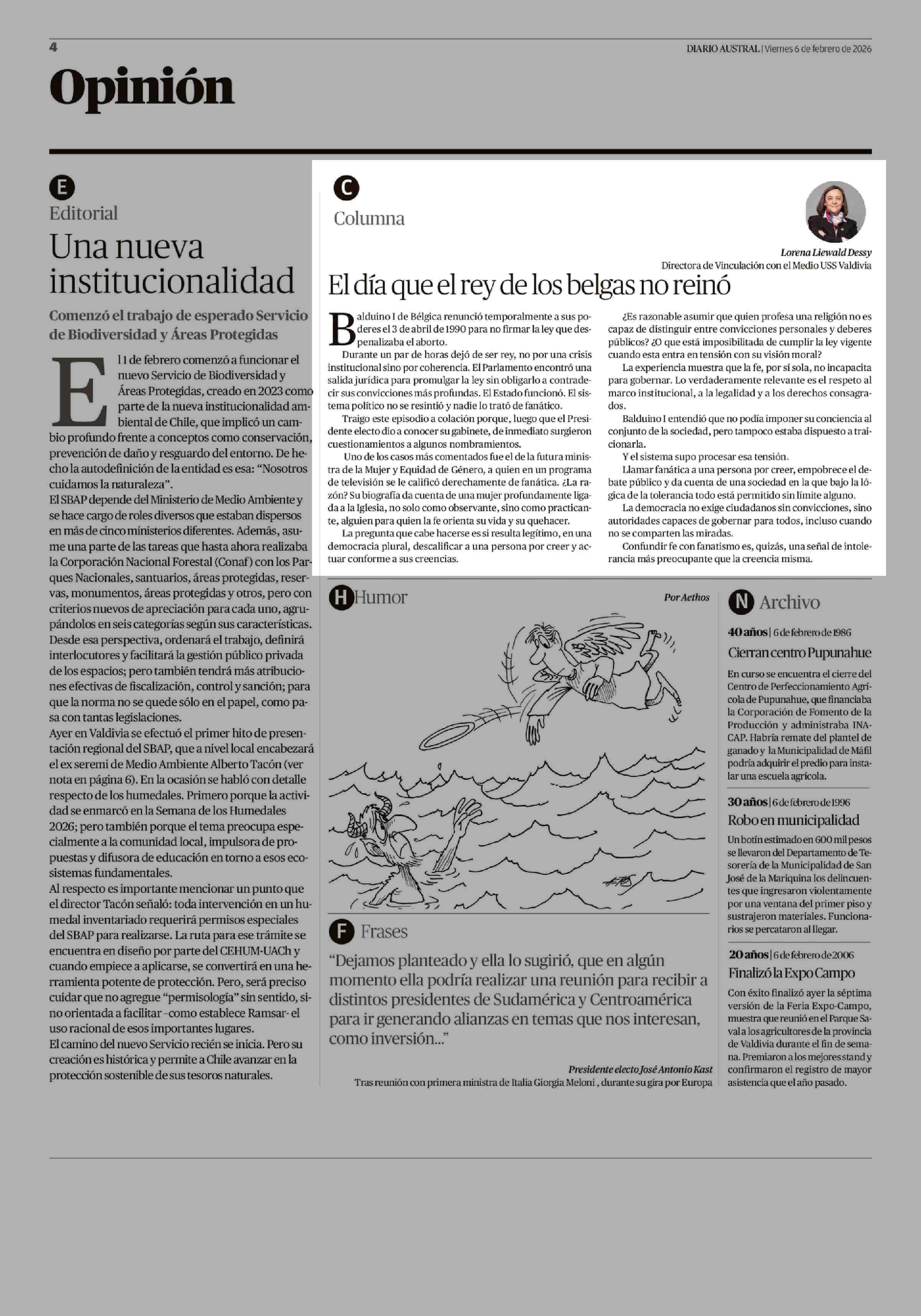 Fecha: 06-02-2026 Sector: Columnas de Opinión Región: Región de Los Ríos