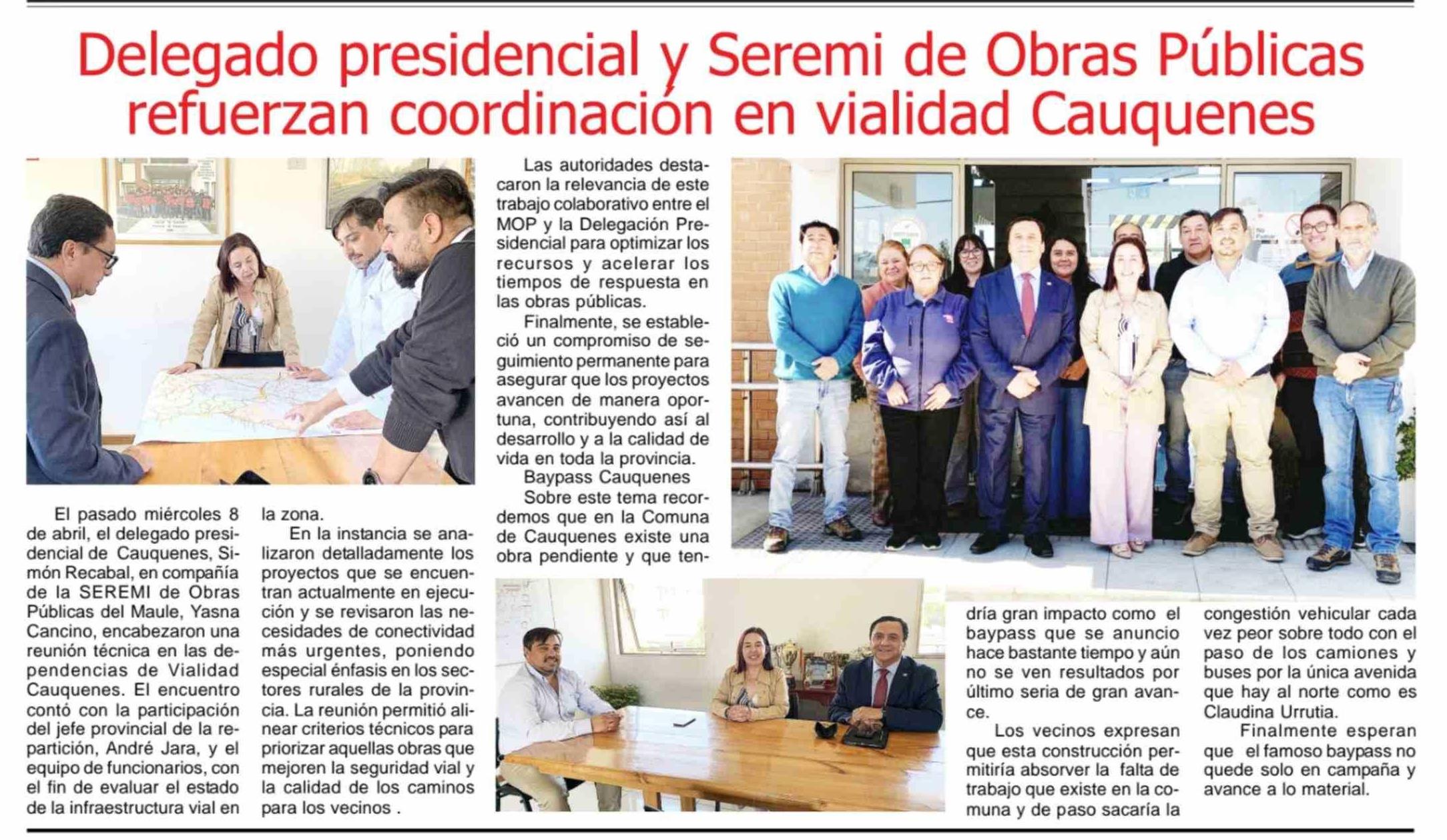 Título: Delegado presidencial y Seremi de Obras Públicas refuerzan coordinación en vialidad Cauquenes