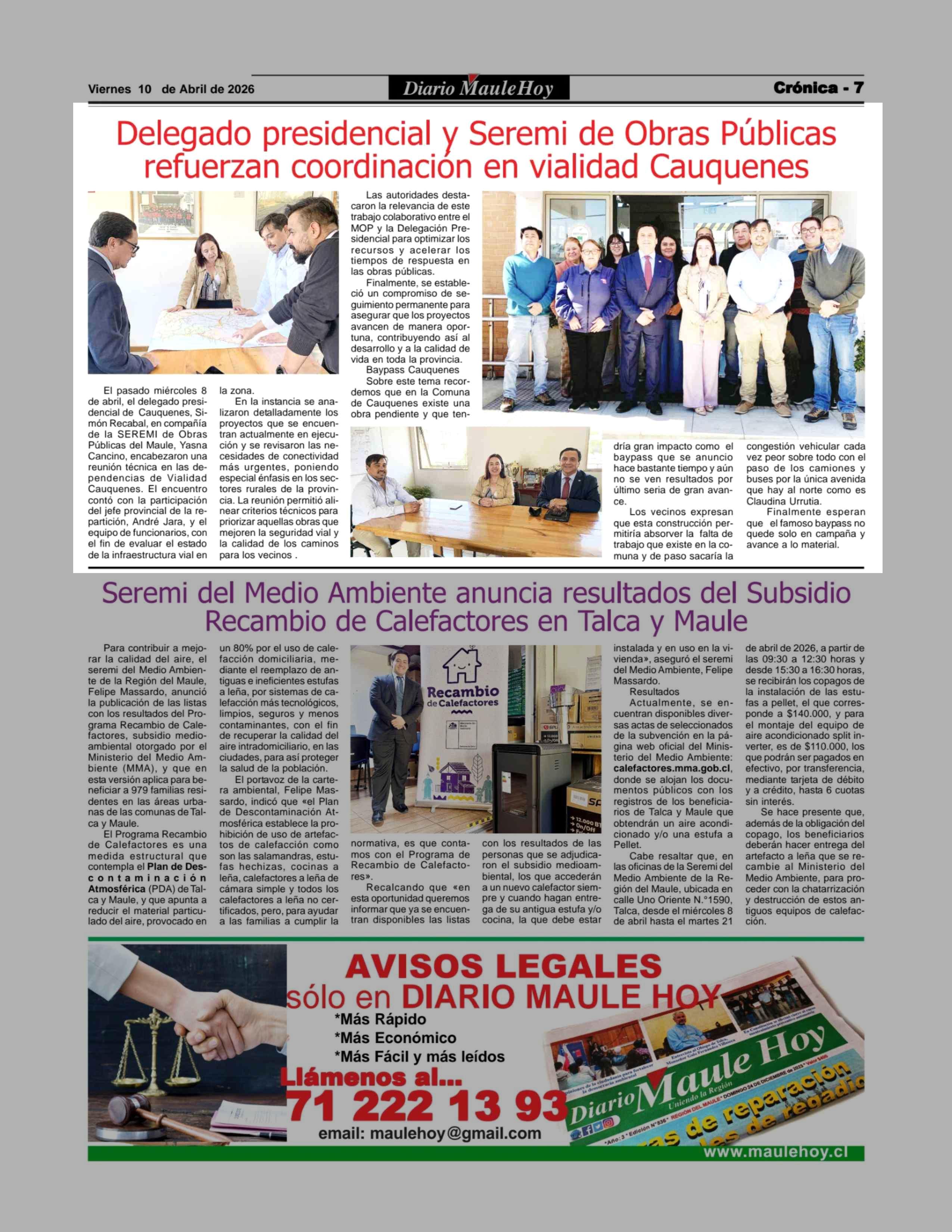 Fecha: 10-04-2026 Sector: Noticia general Región: Región del Maule