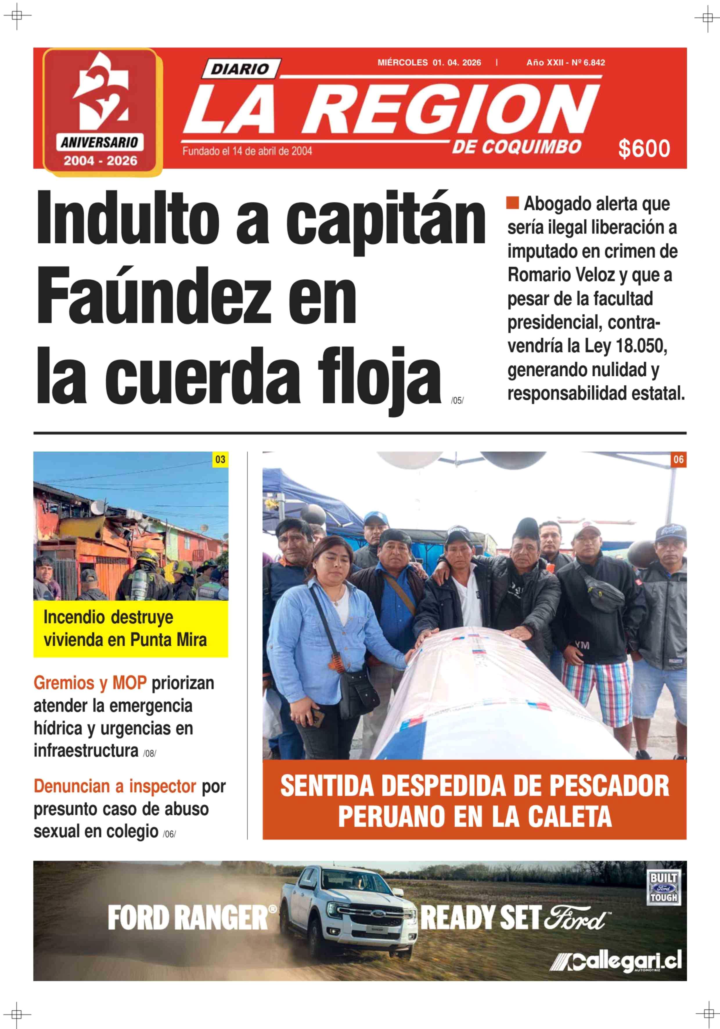 | Fecha: | 01-04-2026 | Sector: | Portada | Región: | Región de Coquimbo |