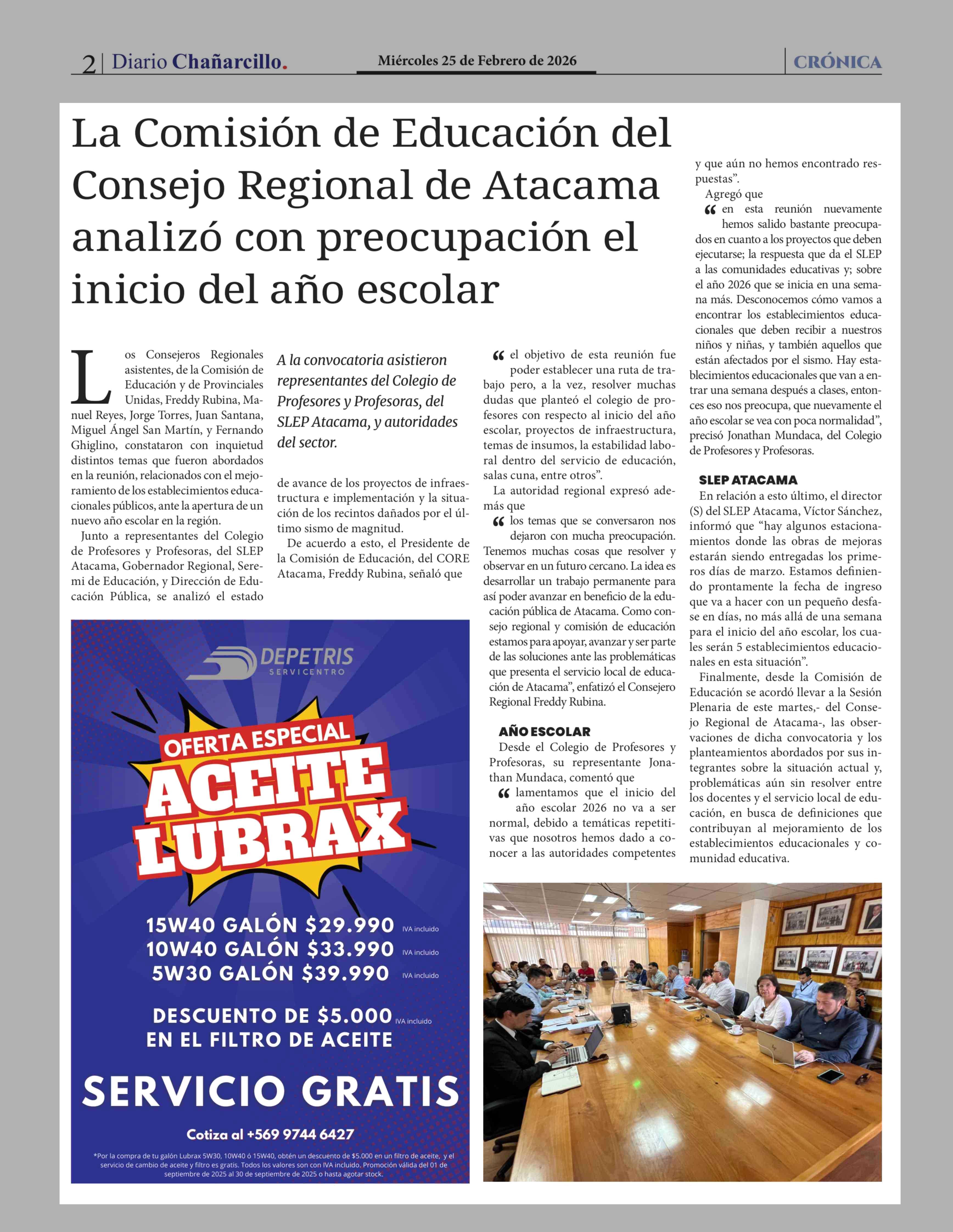 La Comisión de Educación del Consejo Regional de Atacama analizó con preocupación el inicio del año escolar 25-02-2026 Diario Chañarcillo |