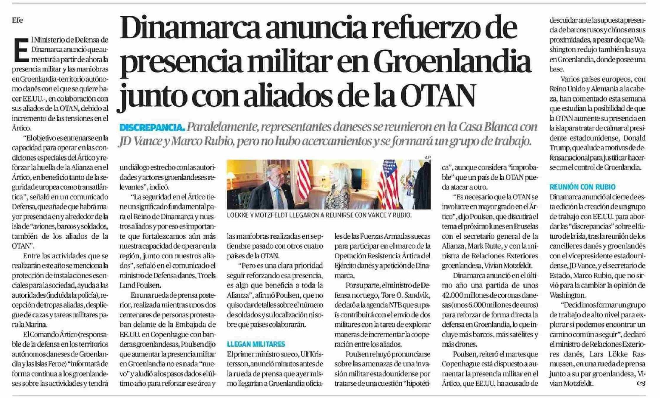 | Título: | Dinamarca anuncia refuerzo de presencia militar en Groenlandia junto con aliados de la OTAN |