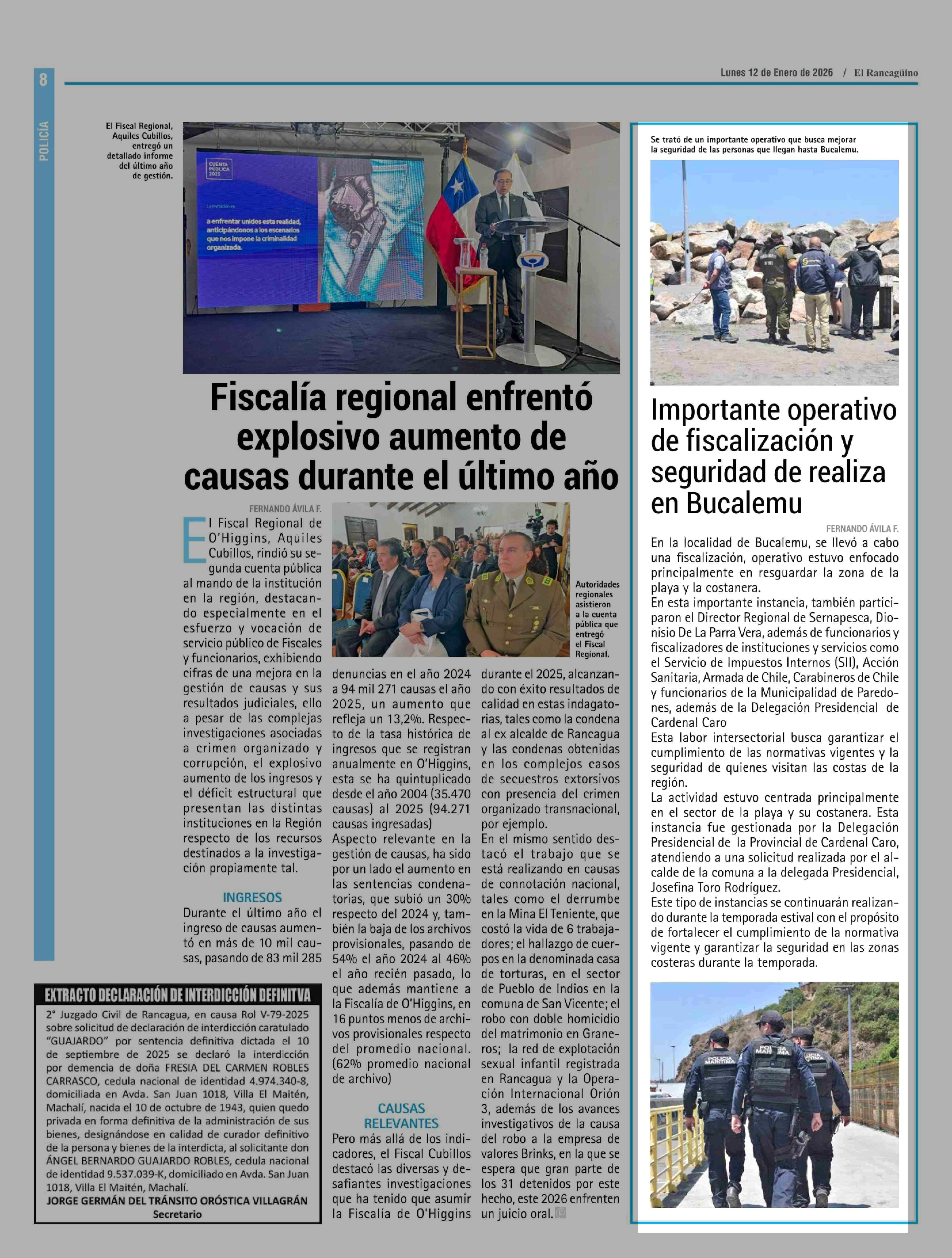 | Fecha: | 12-01-2026 | Sector: | Noticia general | Región: | Región del Libertador General Bernardo O'Higgins |