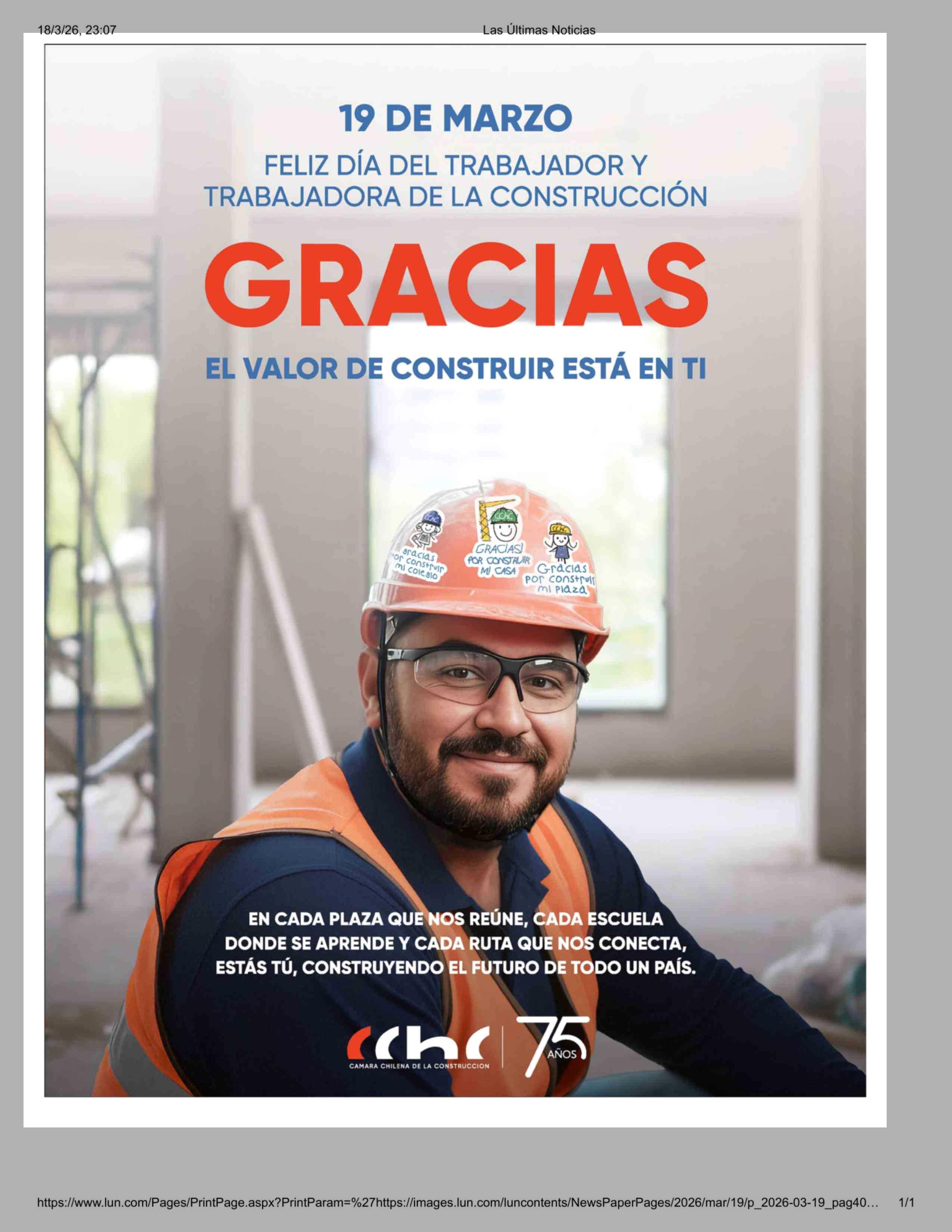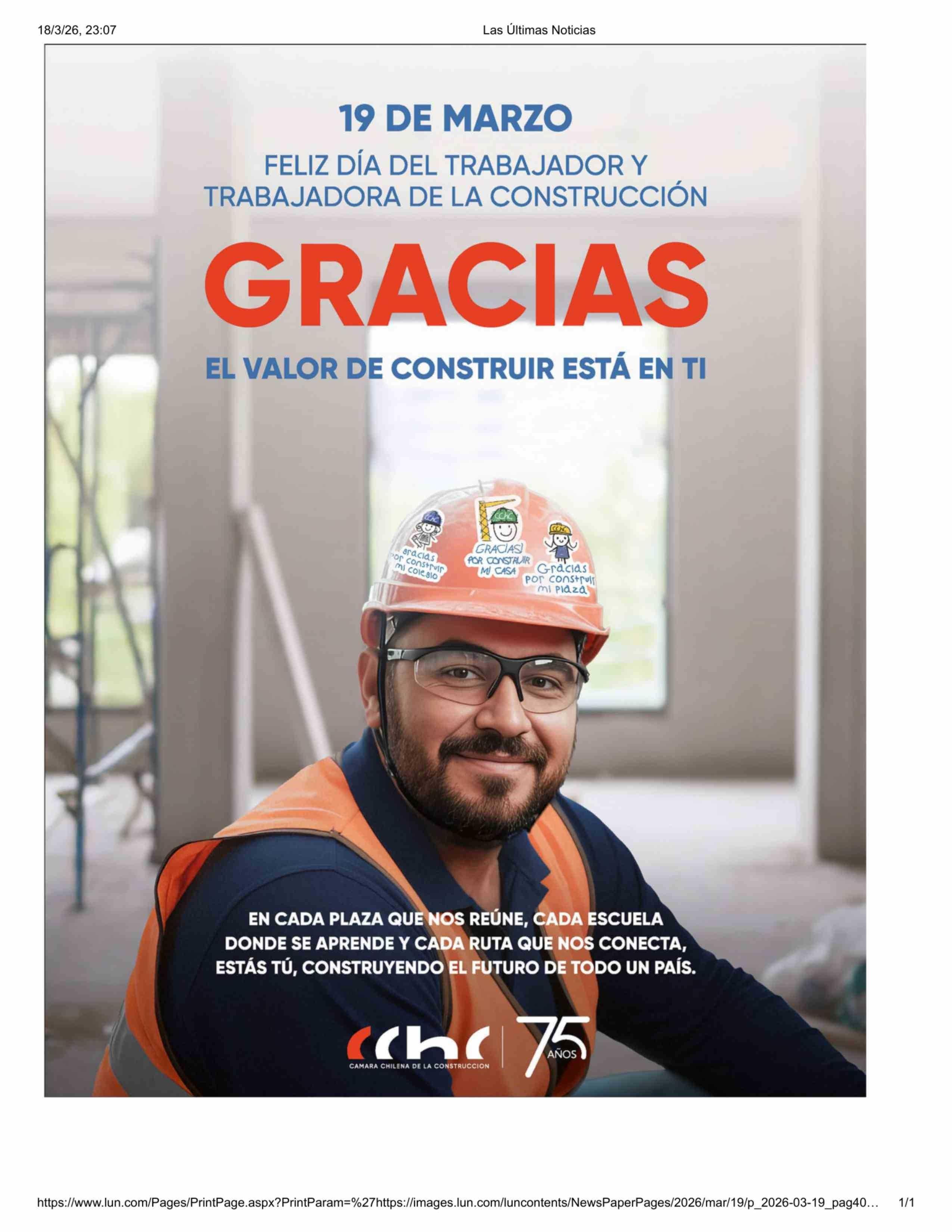 Título: Aviso Publicitario: 19 DE MARZO FELIZ DÍA DEL TRABAJADOR Y TRABAJADORA DE LA CONSTRUCCIÓN