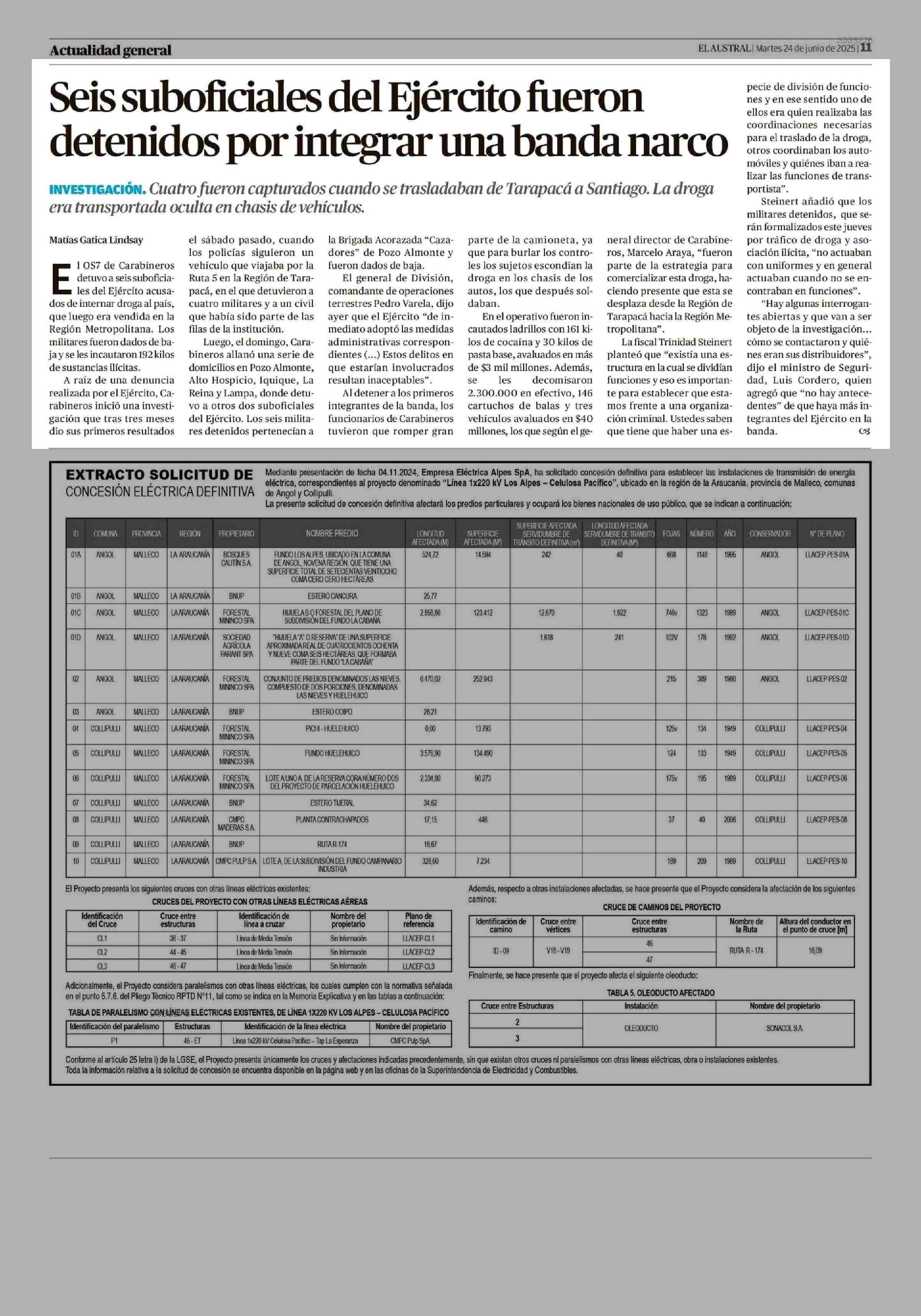 Seis suboficiales del Ejército fueron detenidos por integrar una banda narco 24-06-2025 El Austral de la Araucanía |