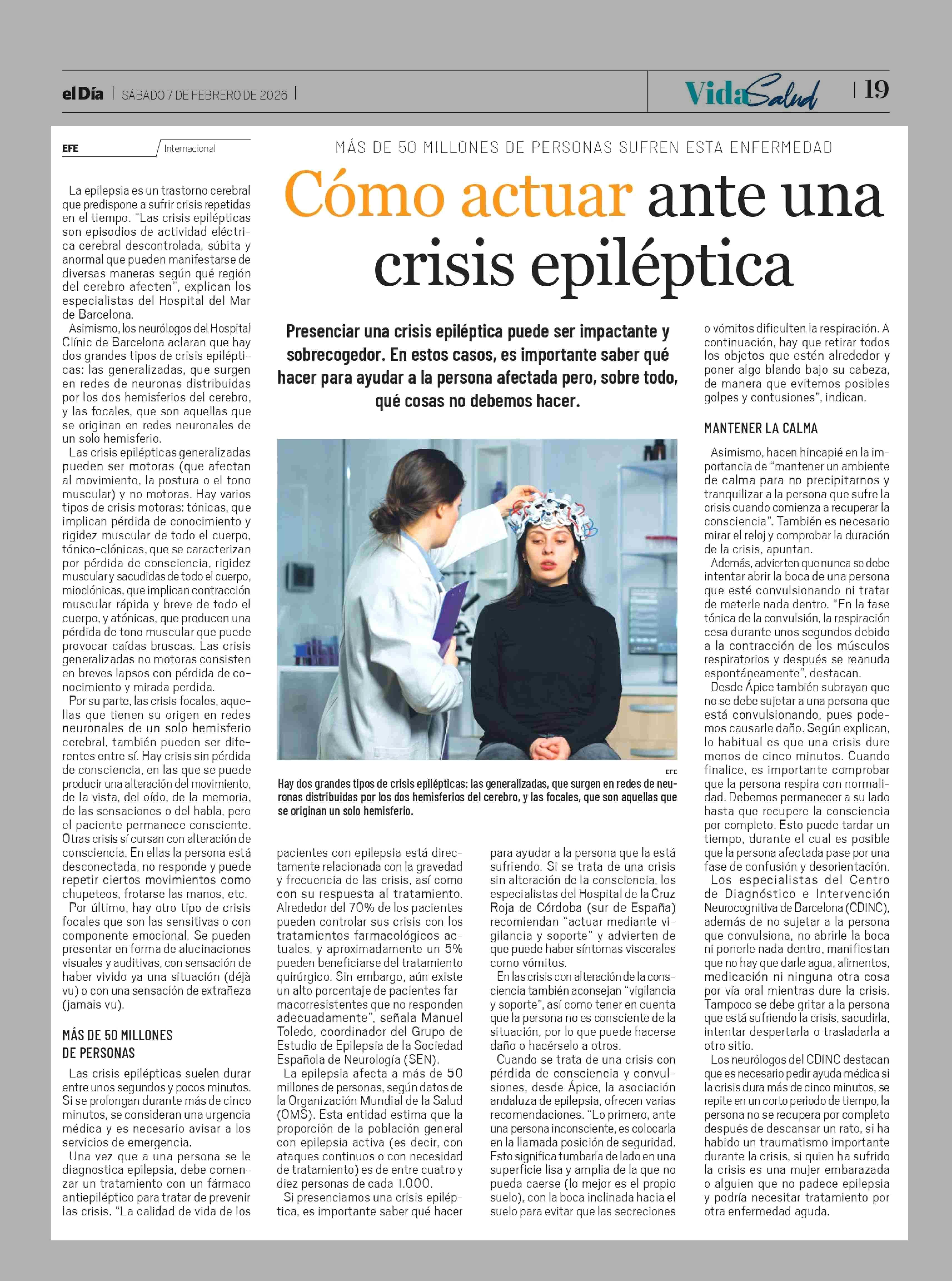 Cómo actuar ante una crisis epiléptica 07-02-2026 El Día |