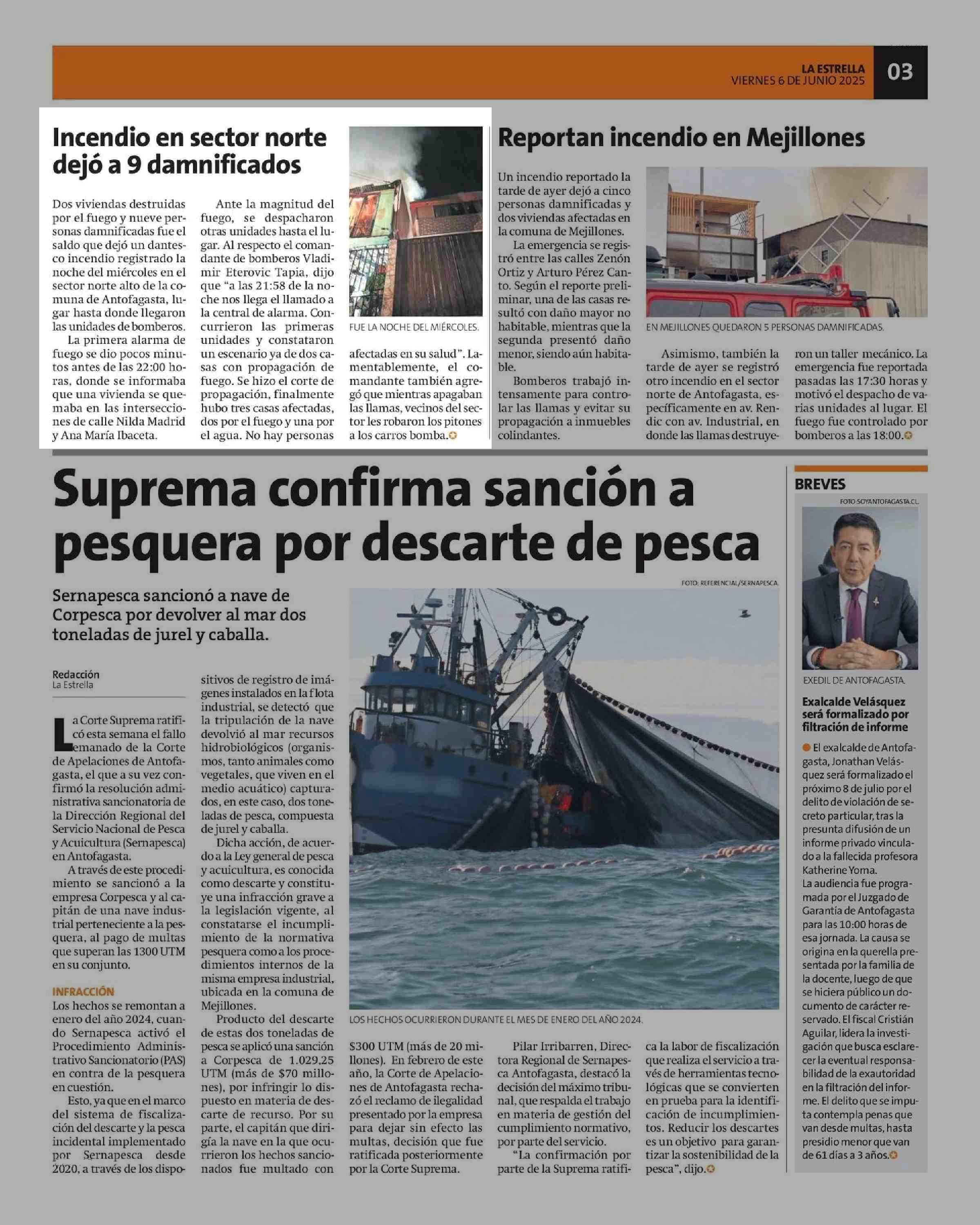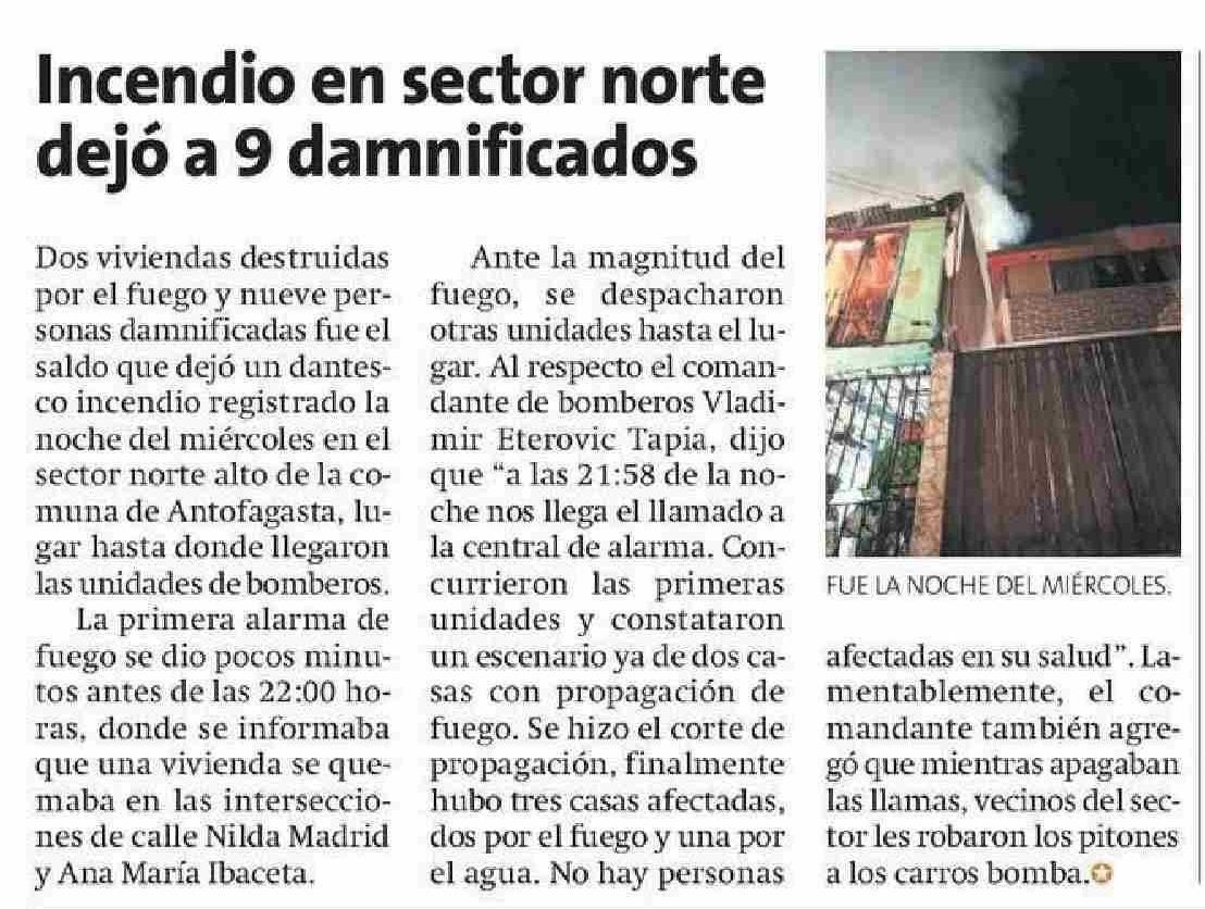 Incendio en sector norte dejó a 9 damnificados 06-06-2025 La Estrella de Antofagasta |