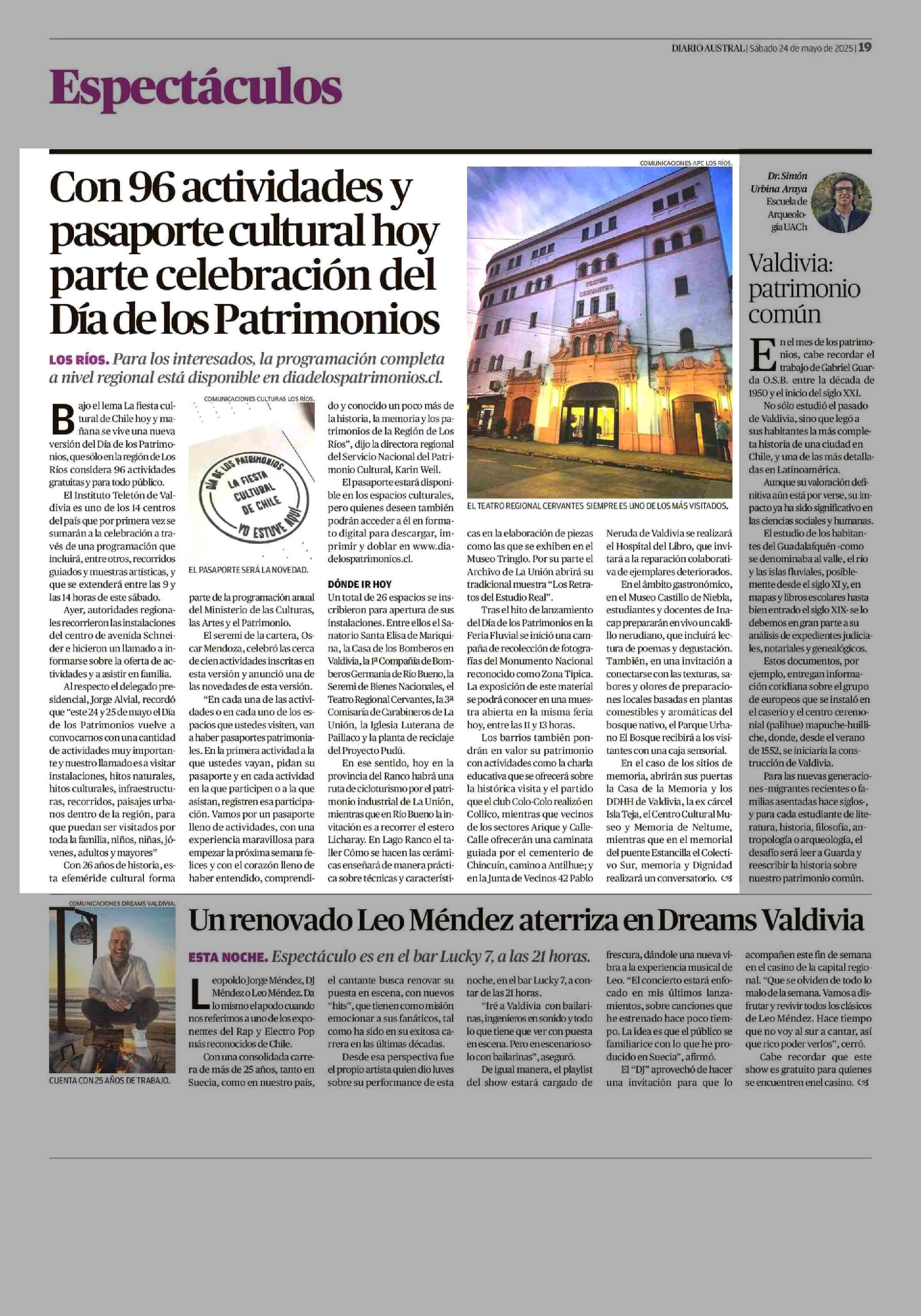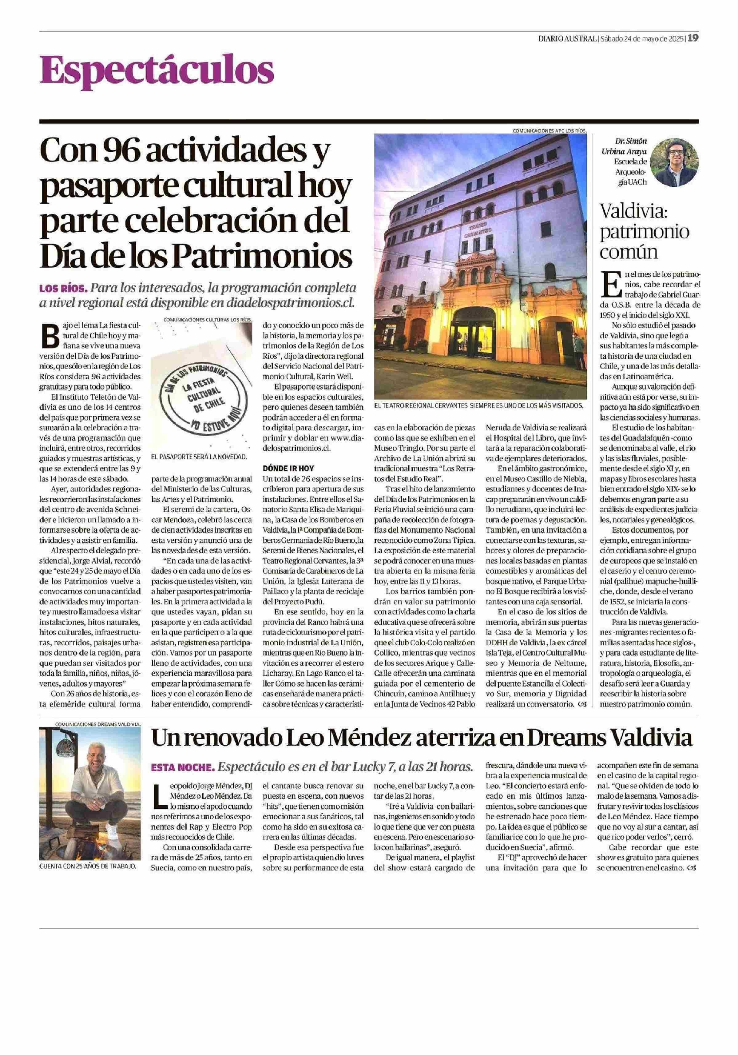 Con 96 actividades y pasaporte cultural hoy parte celebración del Día de los Patrimonios 24-05-2025 Diario Austral Región de Los Ríos |