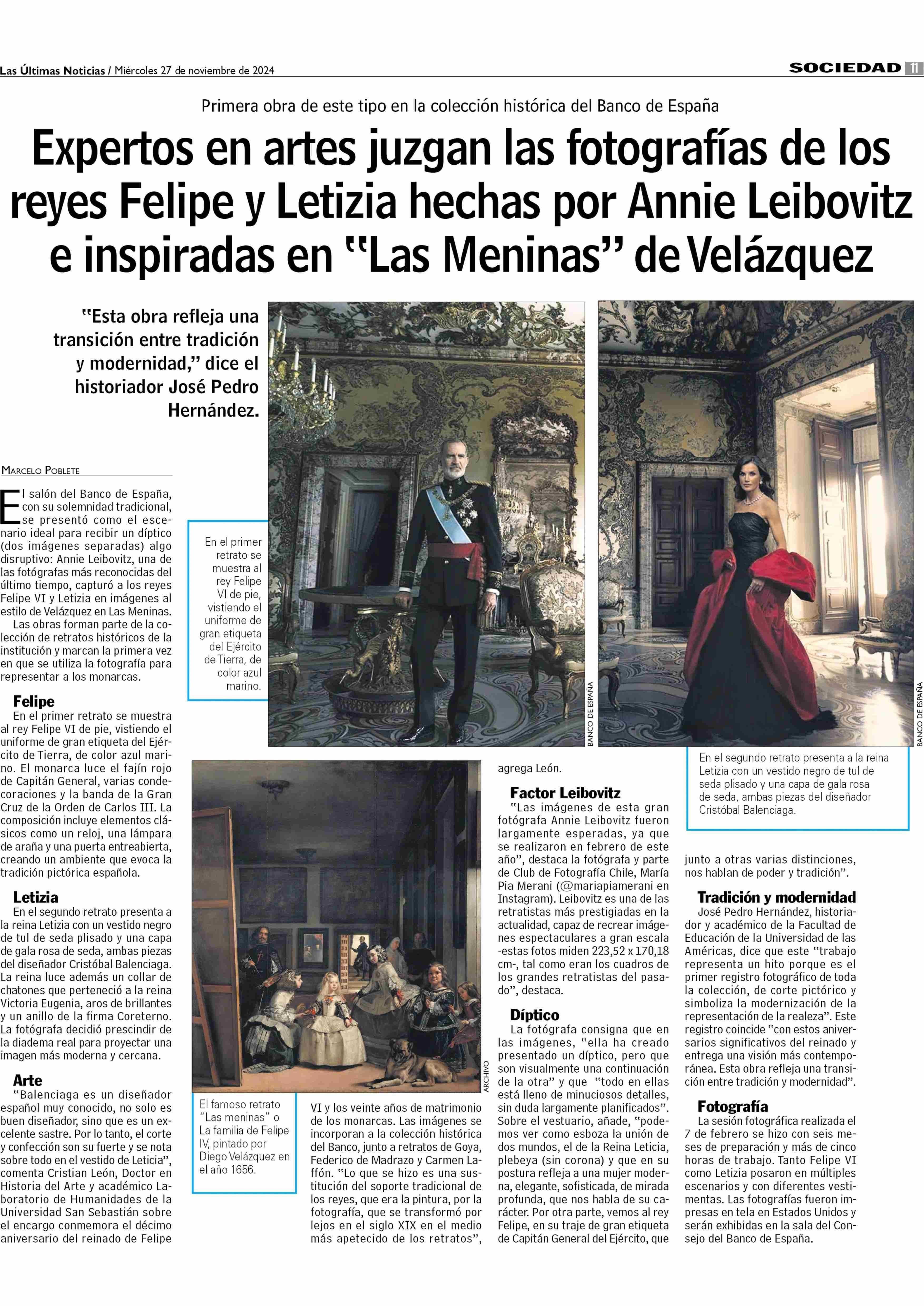 Expertos en artes juzgan las fotografías de los reyes Felipe y Letizia hechas por Annie Leibovitz e inspiradas en “Las Meninas” de Velázquez 27-11-2024 Las Últimas Noticias |