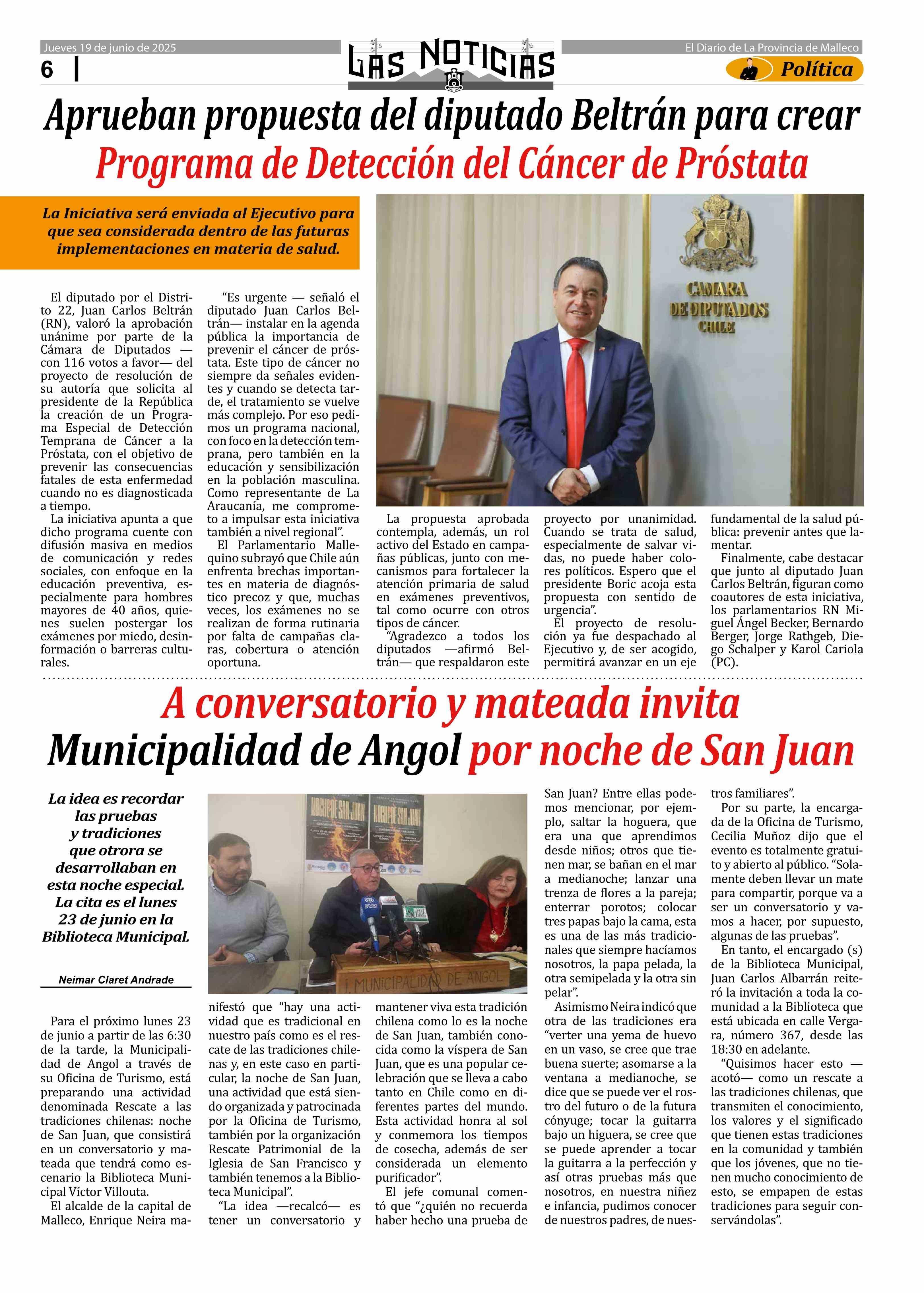 Aprueban propuesta del diputado Beltrán para crear Programa de Detección del Cáncer de Próstata 19-06-2025 Las Noticias |