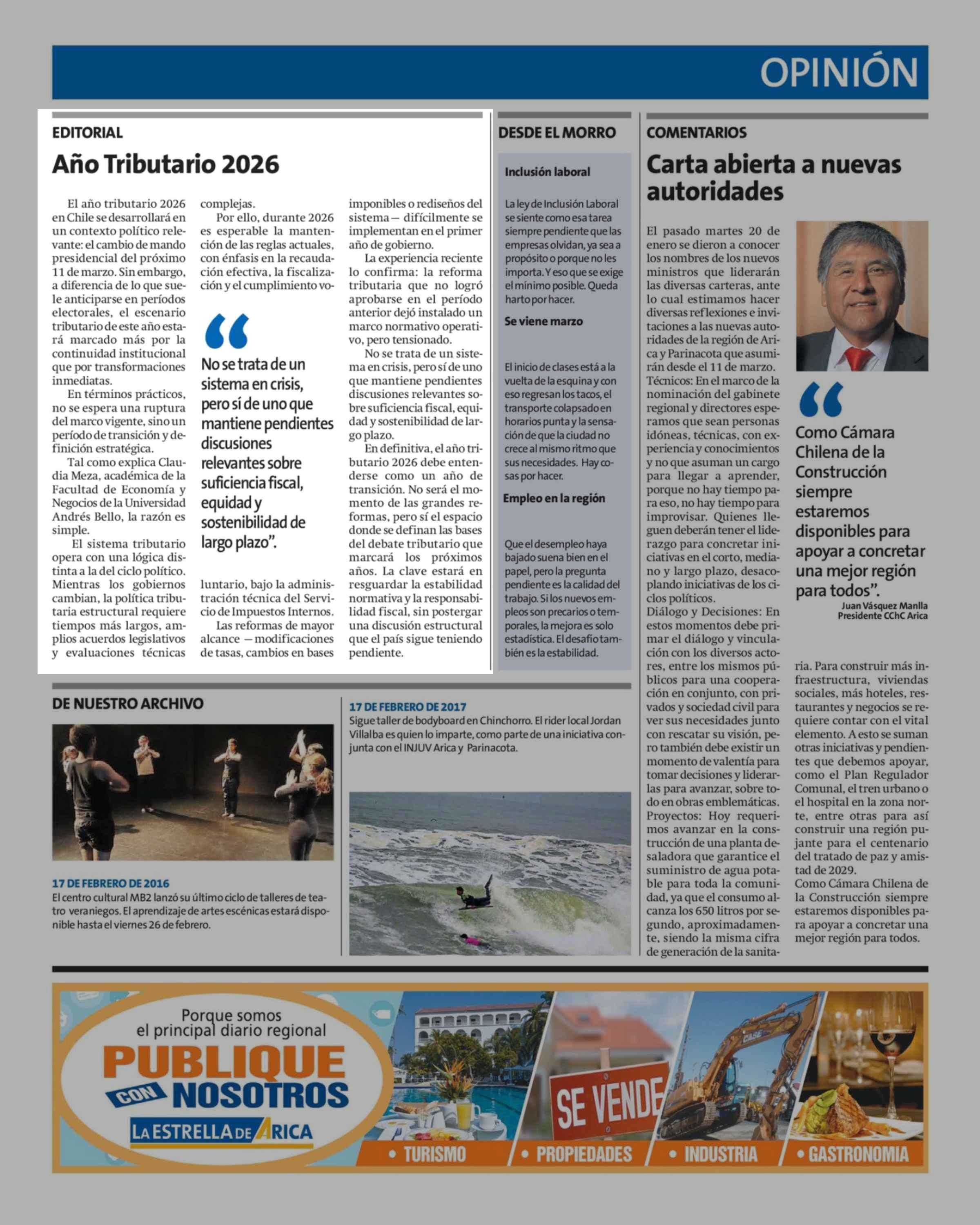 Editorial: Año Tributario 2026 17-02-2026 La Estrella de Arica |