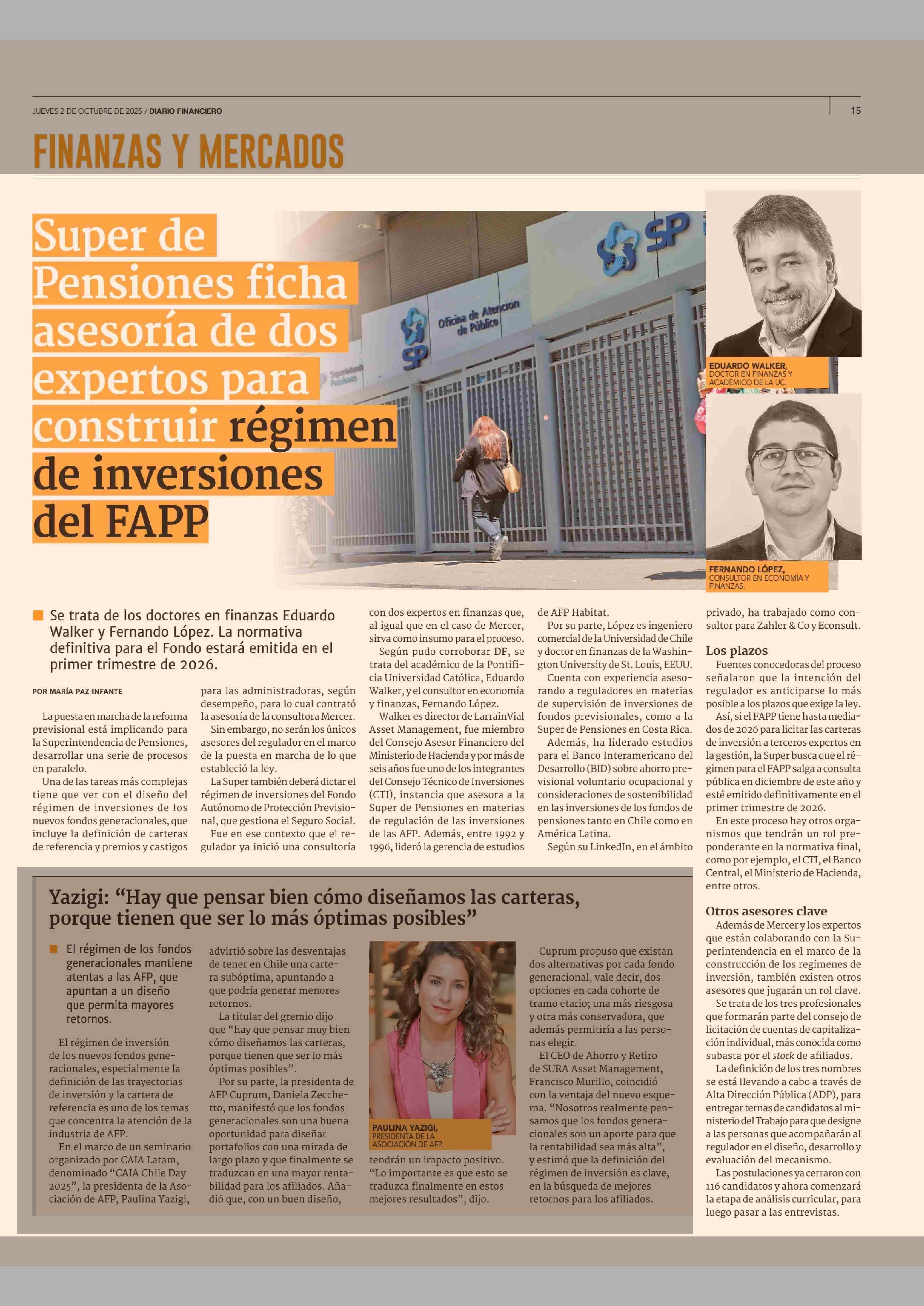 Título: Super de Pensiones ficha asesoría de dos expertos para consyruir régimen de inversiones FAPP