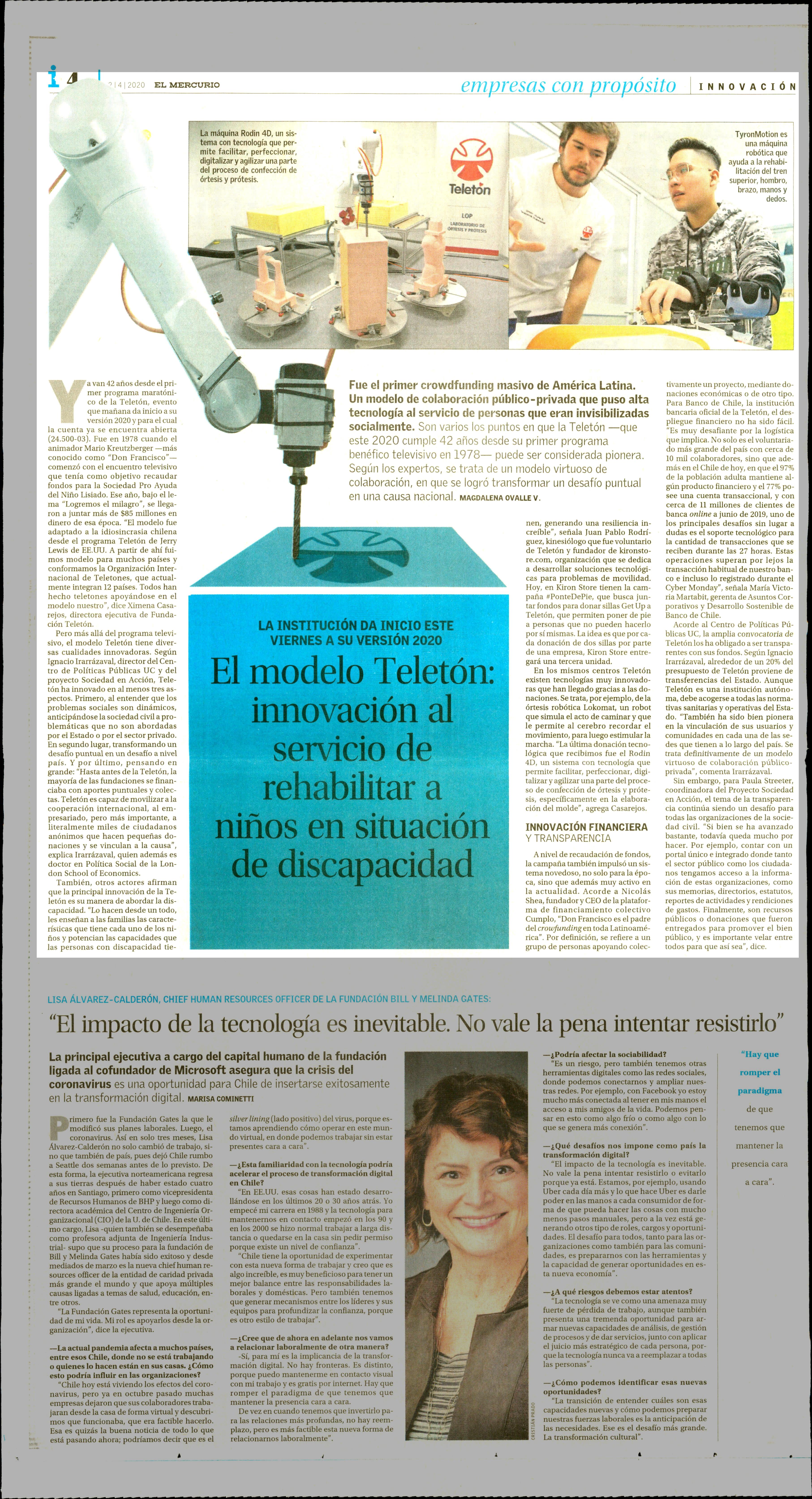 El modelo Teletón: innovación al servicio de rehabilitar a niños en situación de discapacidad 02-04-2020 El Mercurio |