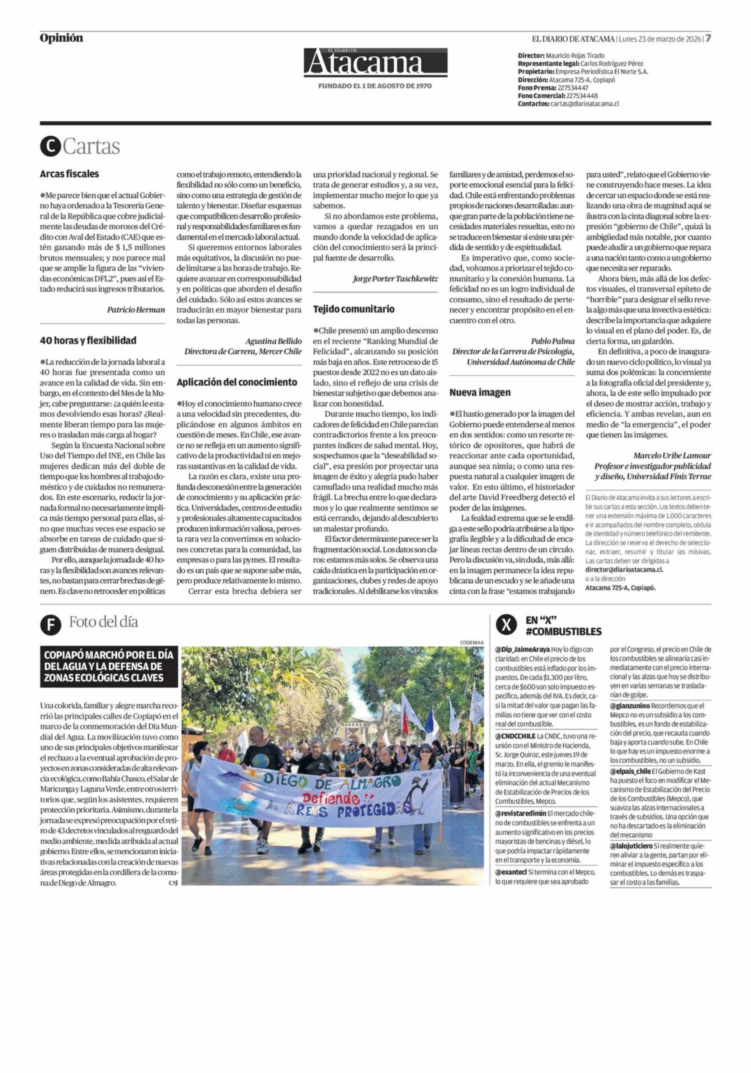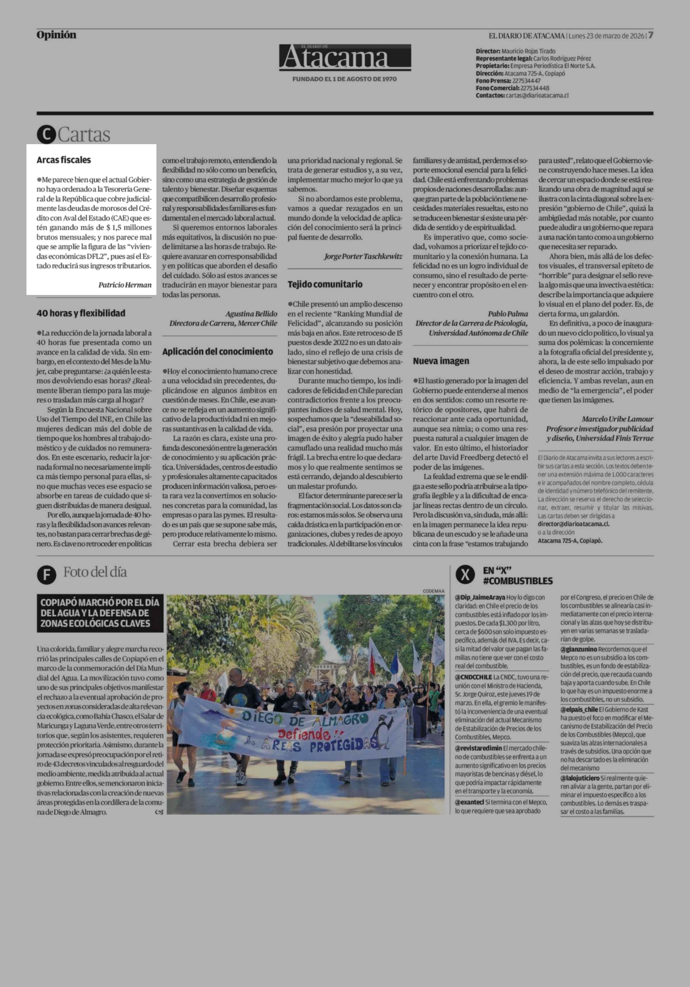Cartas: Arcas fiscales 23-03-2026 El Diario de Atacama |