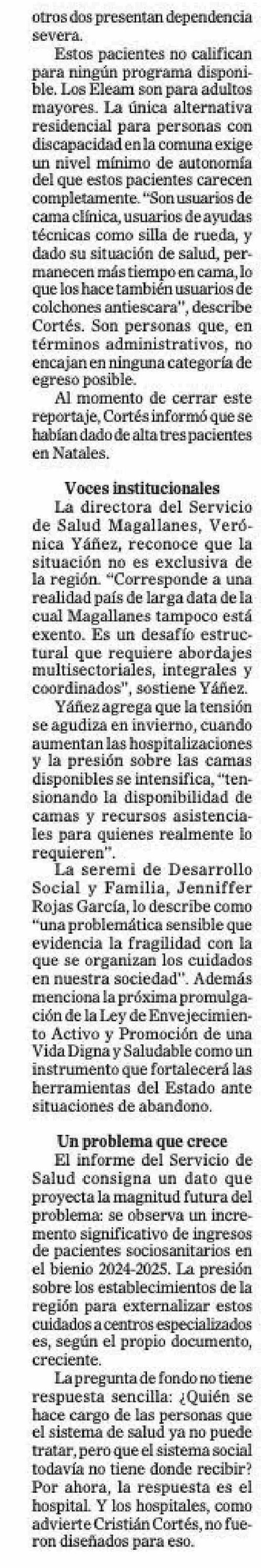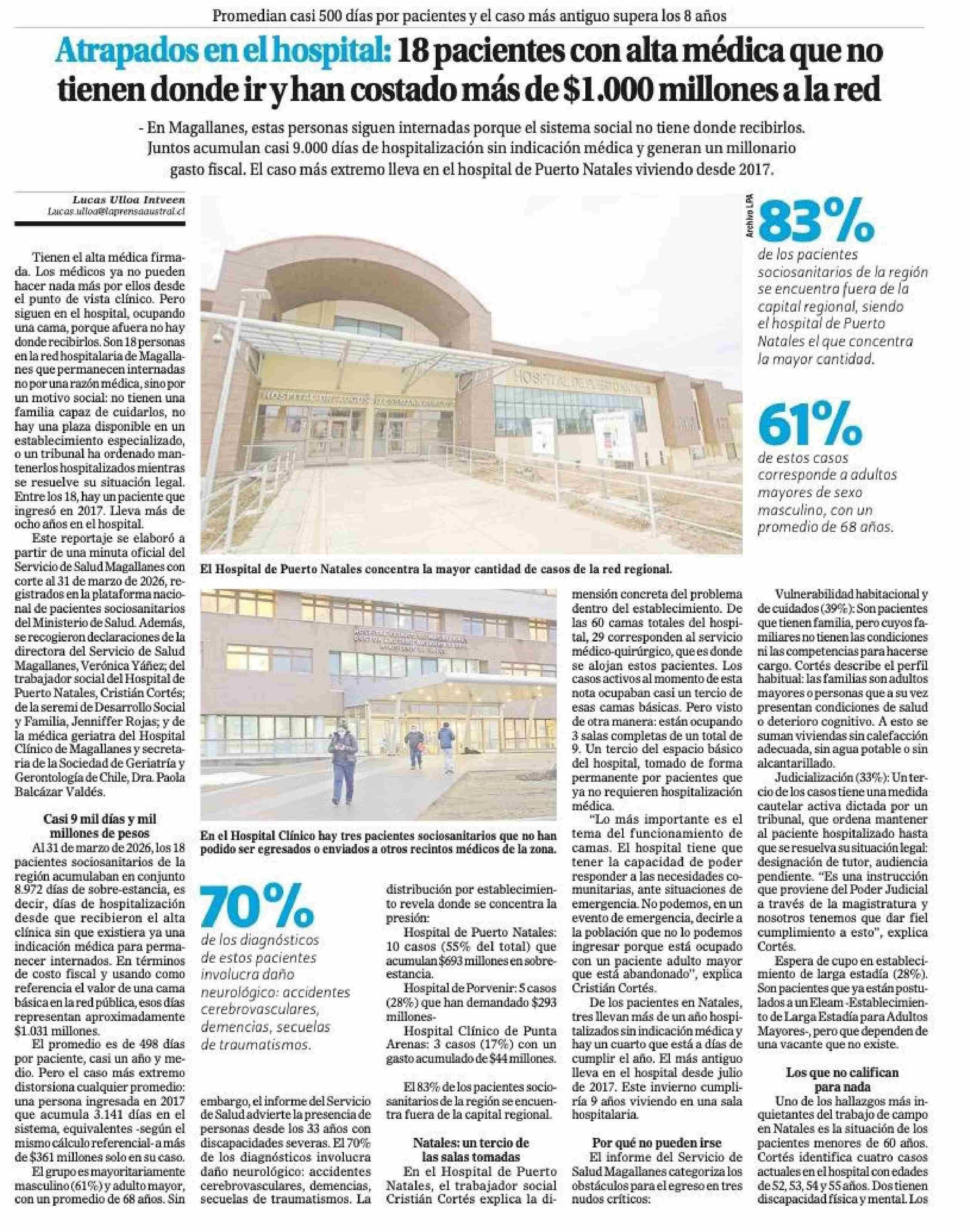 Atrapados en el hospital: 18 pacientes con alta médica que no tienen donde ir y han costado más de $1.000 millones ala red 26-04-2026 El Magallanes |