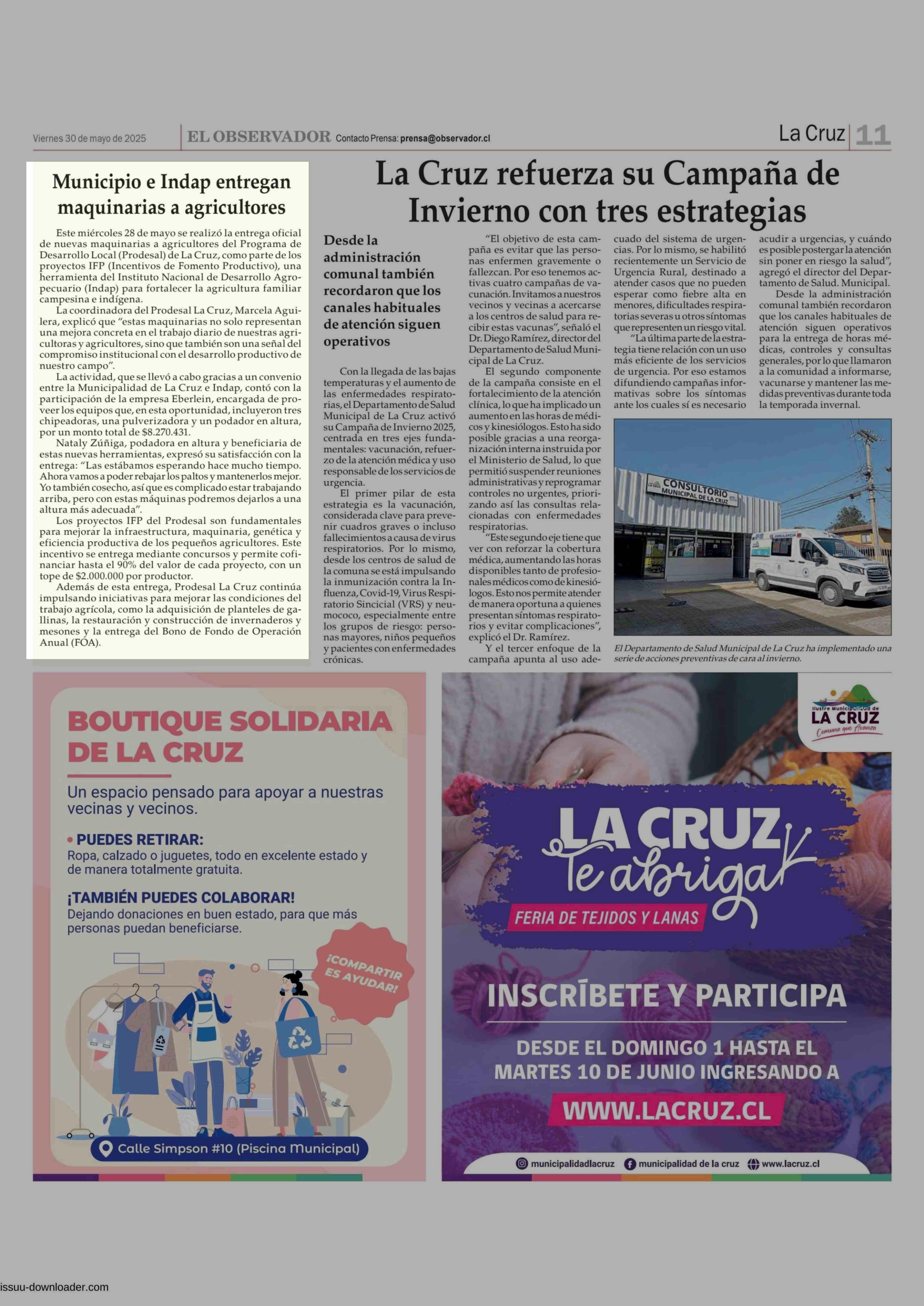 Municipio e Indap entregan maquinarias a agricultores 30-05-2025 El Observador |