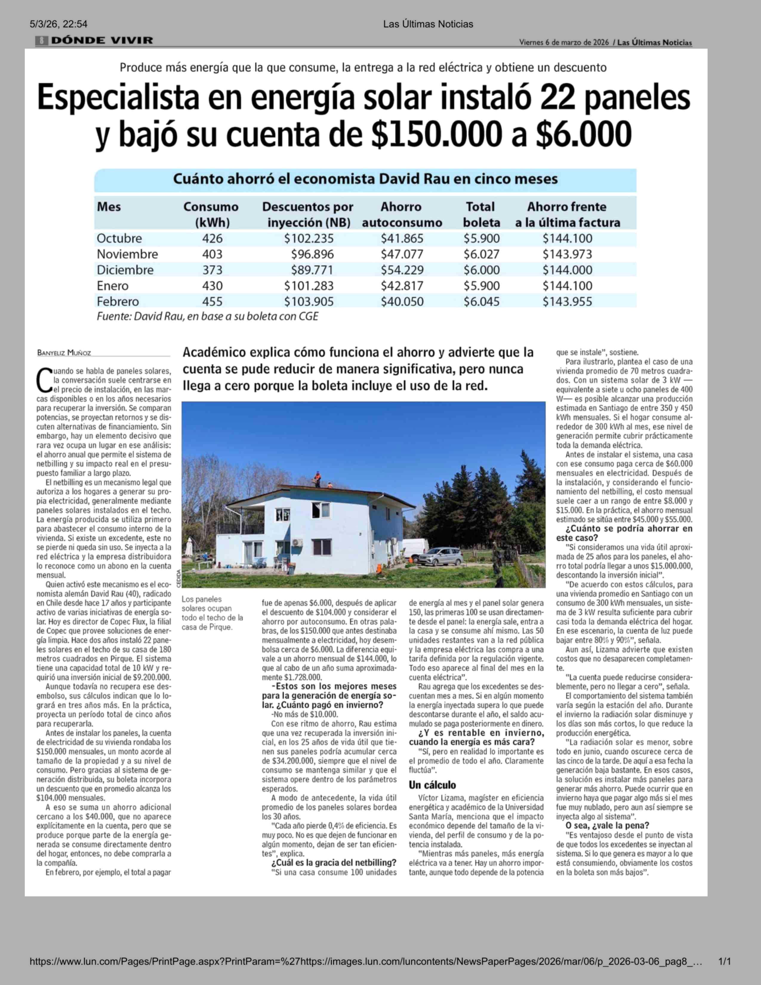 Título: Especialista en energía solar instaló 22 paneles y bajó su cuenta de $150.000 a $6.000