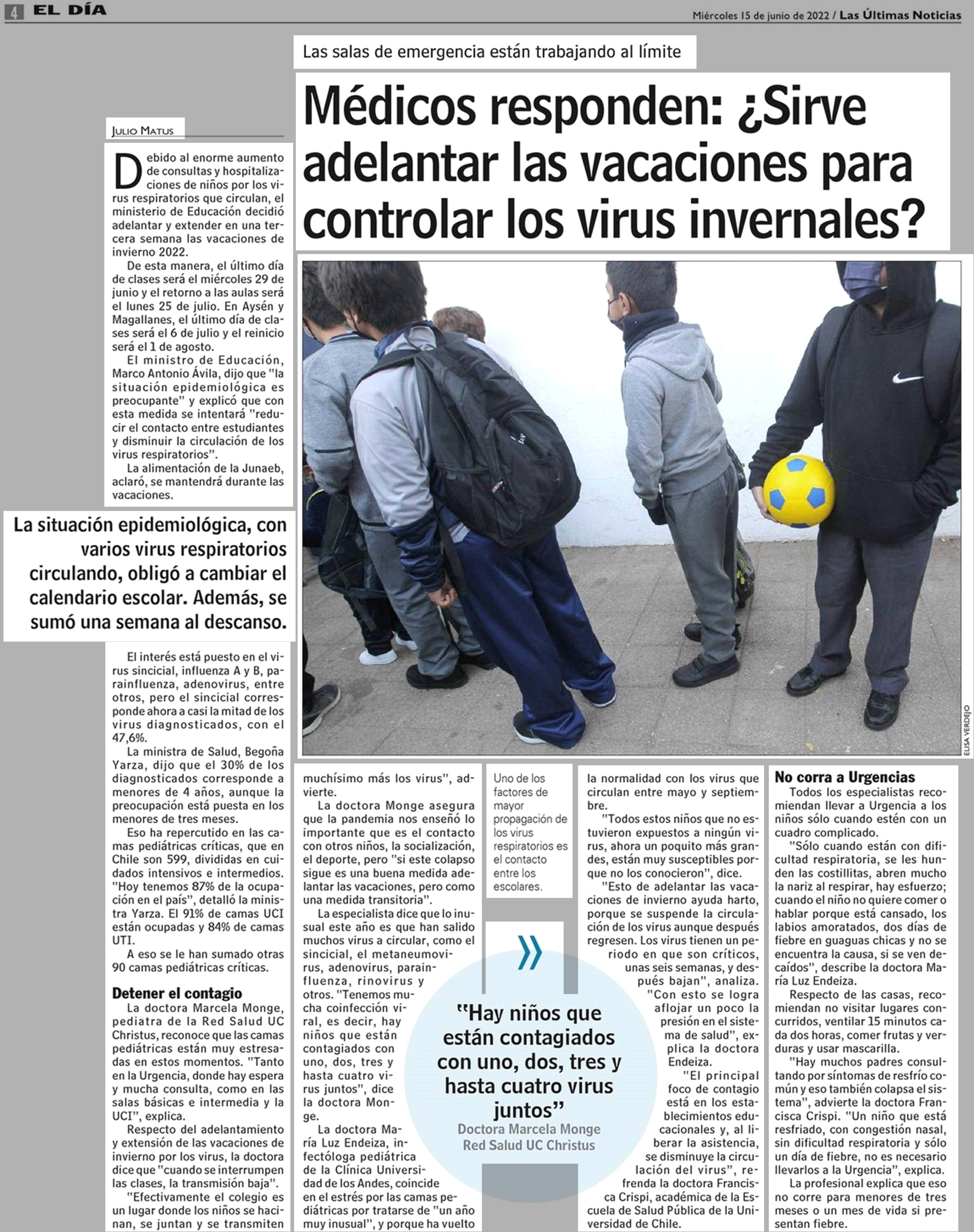 Médicos responden: ¿Sirve adelantar las vacaciones para controlar los virus invernales? 15-06-2022 Las Últimas Noticias |