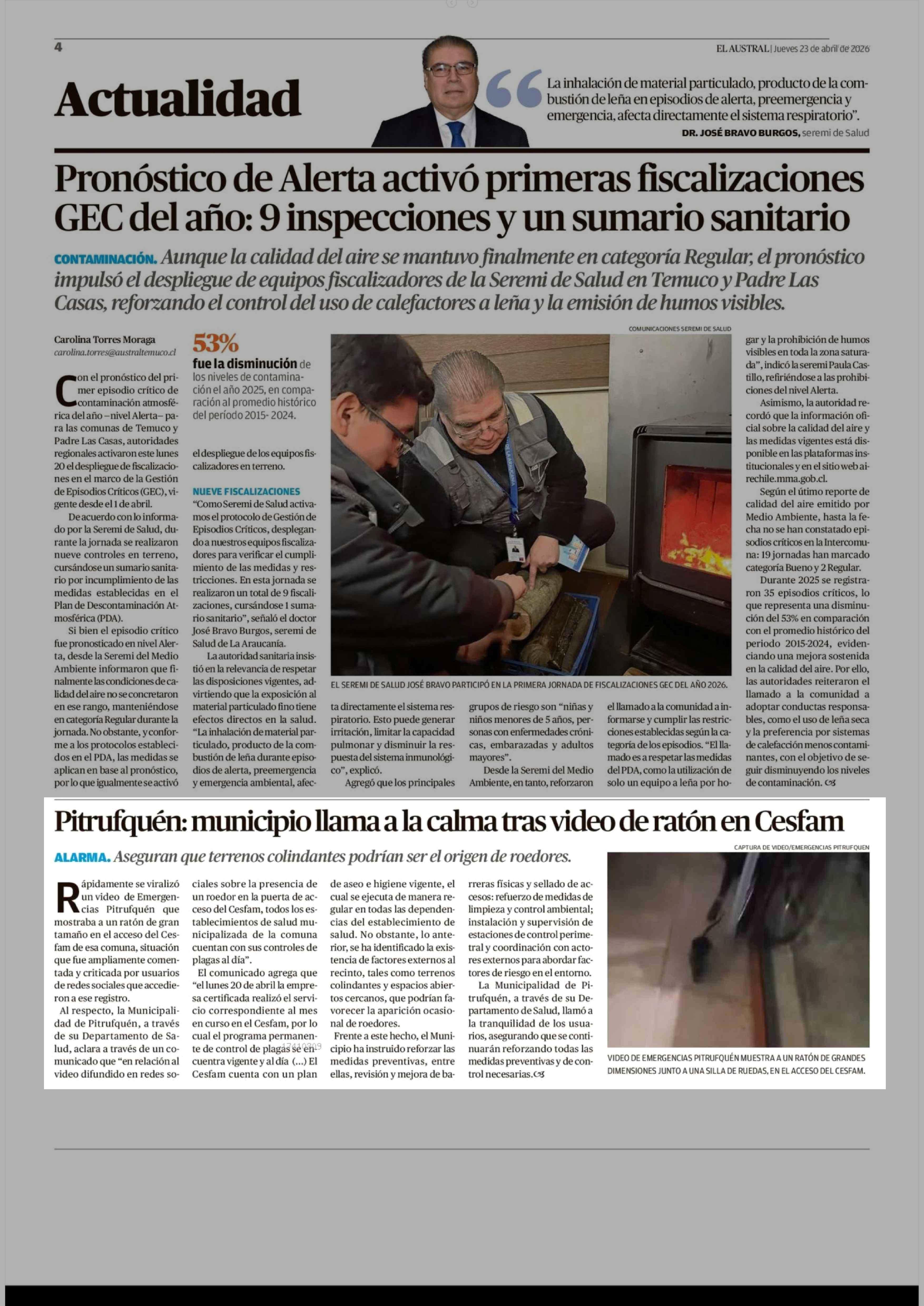 Fecha: 23-04-2026 Sector: Noticia general Región: Región de la Araucanía
