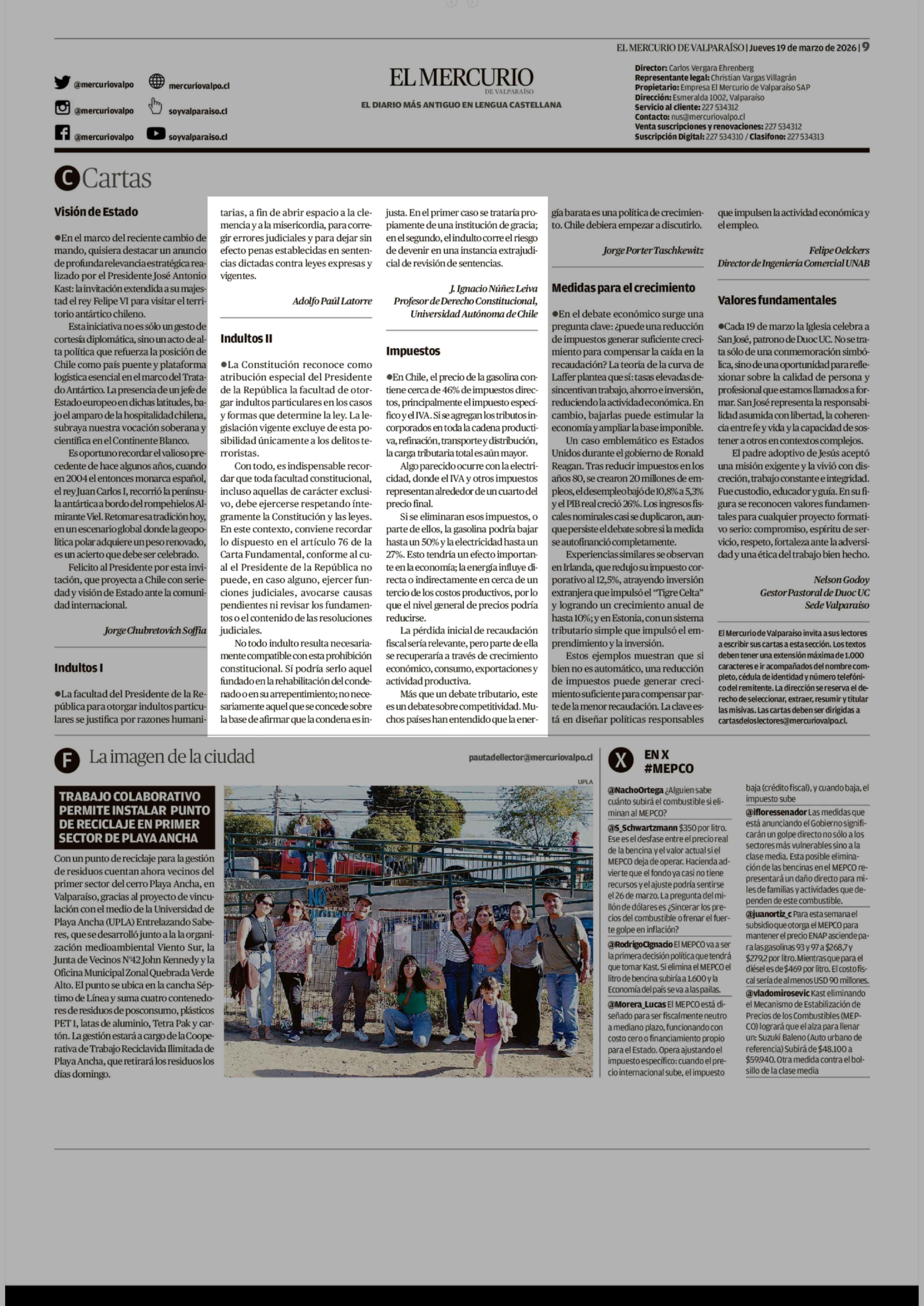 Cartas: Indultos II 19-03-2026 El Mercurio de Valparaíso |