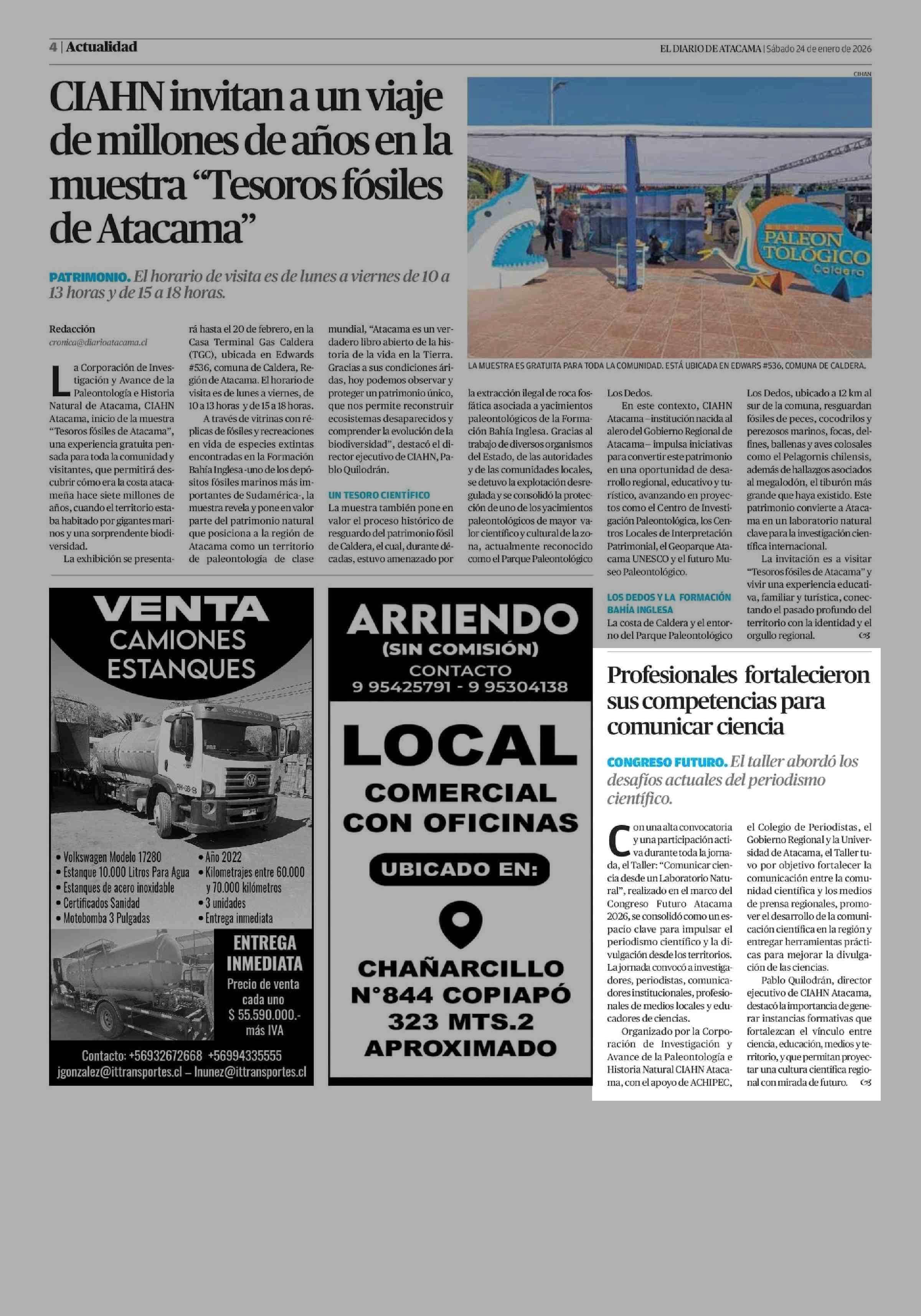 Profesionales fortalecieron sus competencias para comunicar ciencia 24-01-2026 El Diario de Atacama |