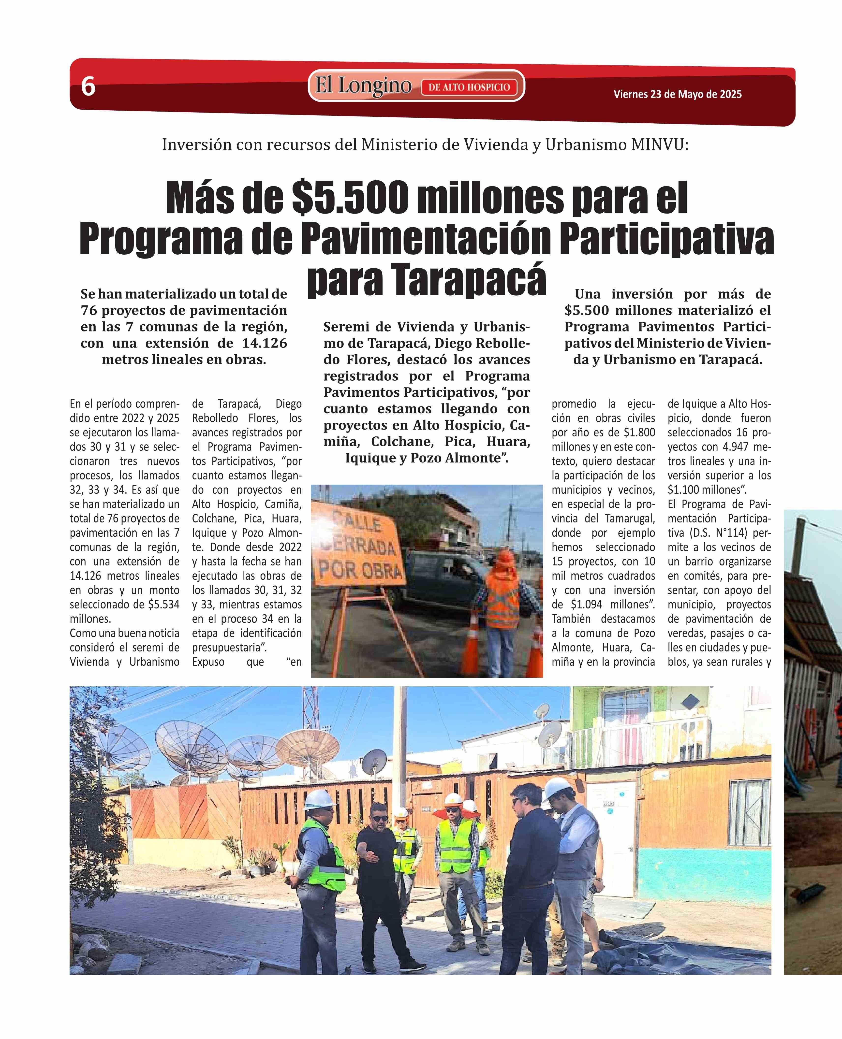 Más de $5.500 millones para el Programa de Pavimentación Participativa para Tarapacá 23-05-2025 El Longino |