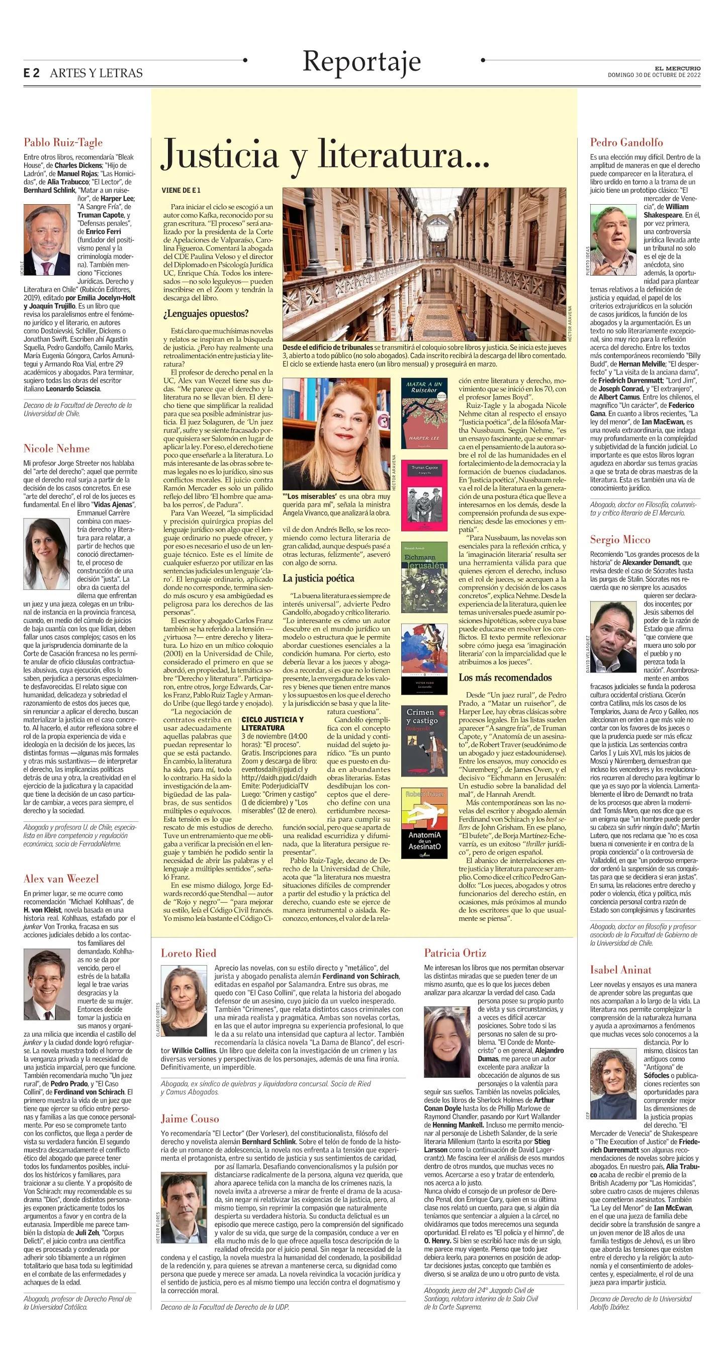JUSTICIA Y LITERATURA: MIRADAS QUE SE ENTRECRUZAN 30-10-2022 El Mercurio |