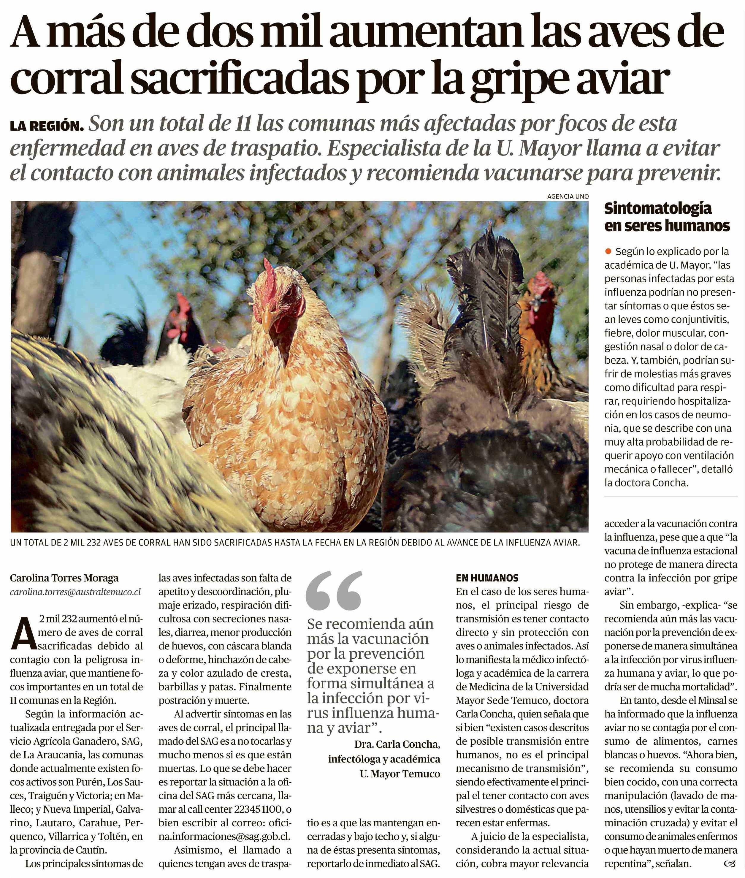 A más de dos mil aumentan las aves de corral sacrificadas por la gripe aviar 28-04-2023 El Austral de la Araucanía |