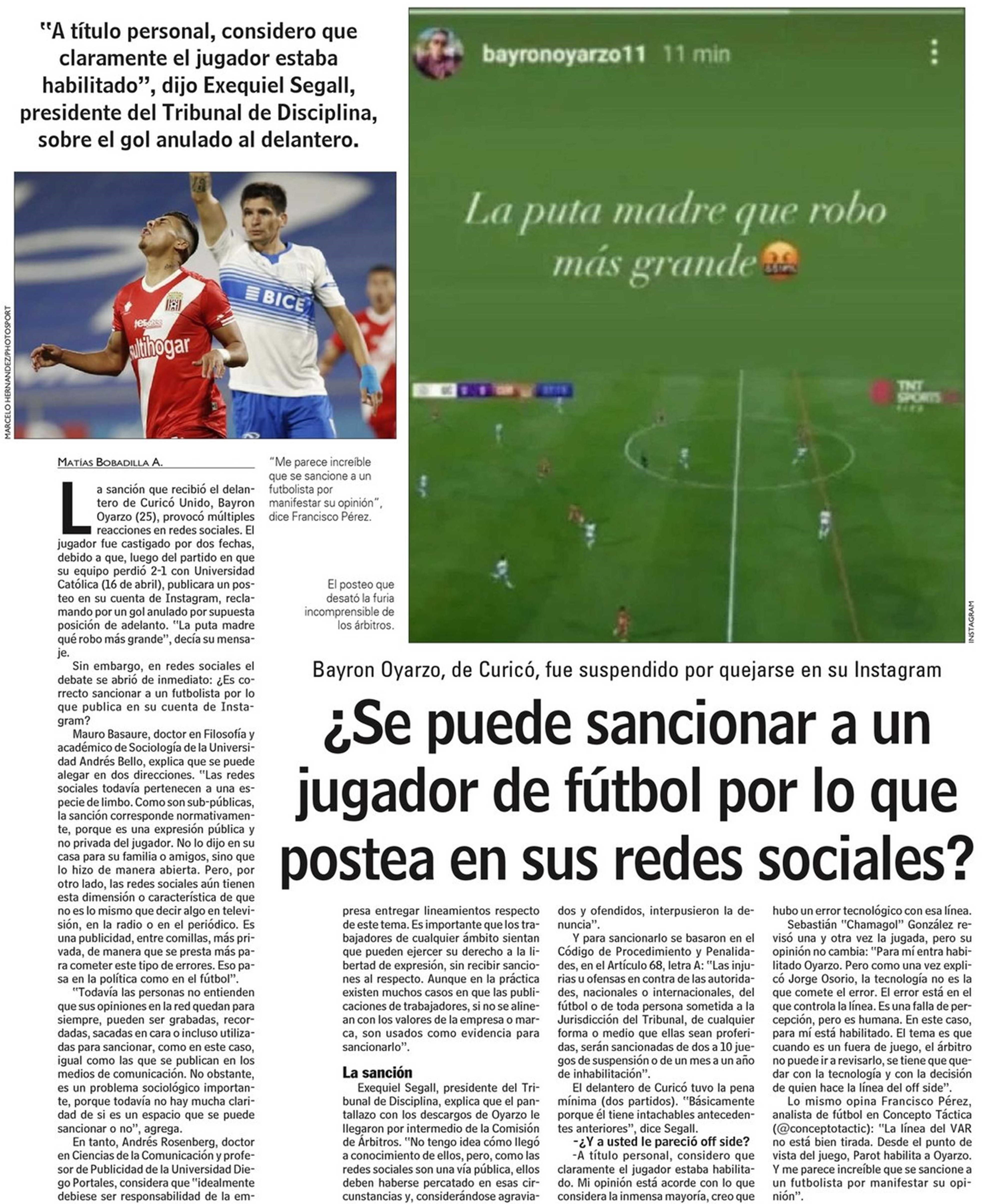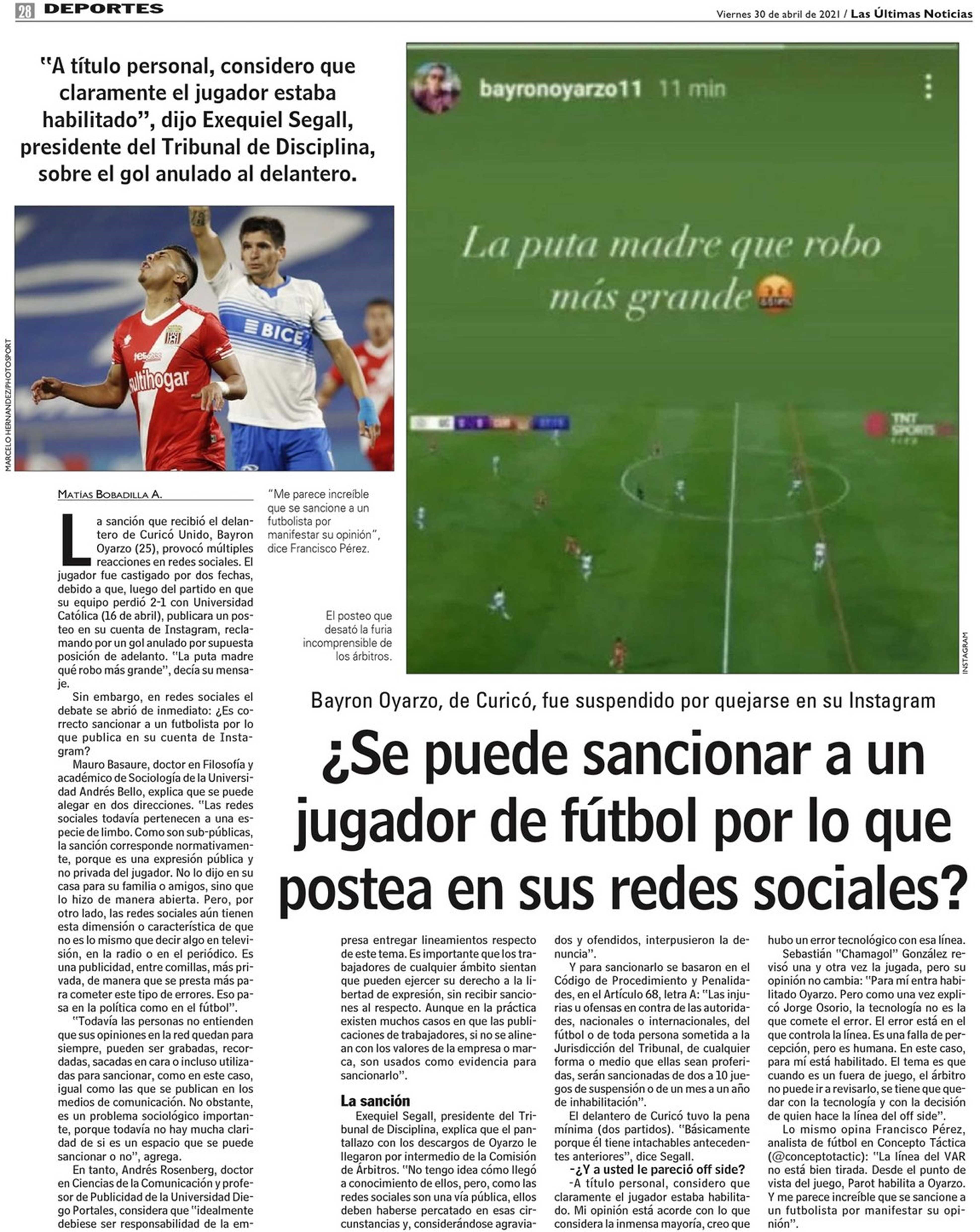 ¿ Se puede sancionar a un jugador de fútbol por lo que postea en sus redes sociales? 30-04-2021 Las Últimas Noticias |
