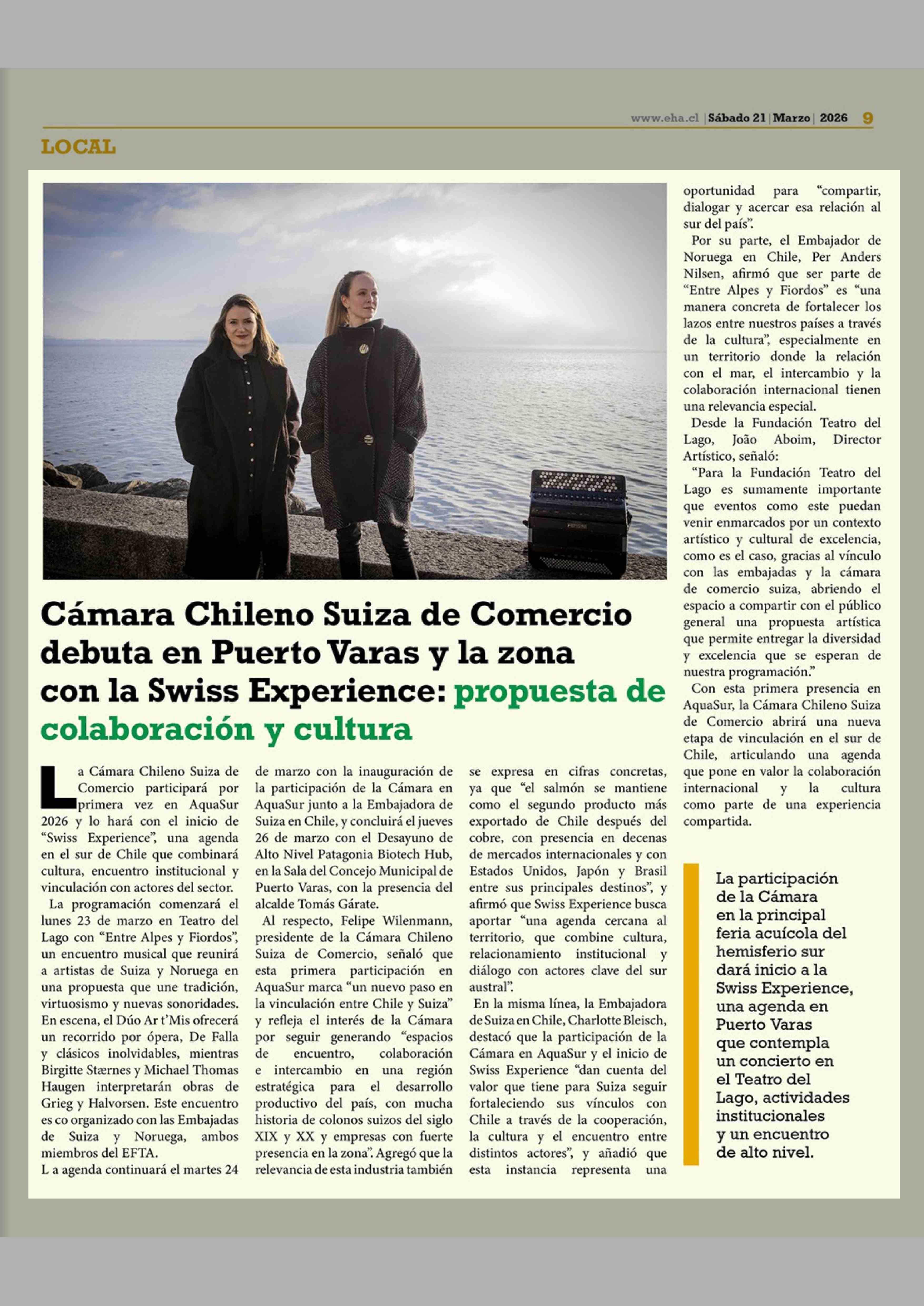 Título: Cámara Chileno Suiza de Comercio debuta en Puerto Varas y la zona con la Swiss Experience: propuesta de colaboración y cultura