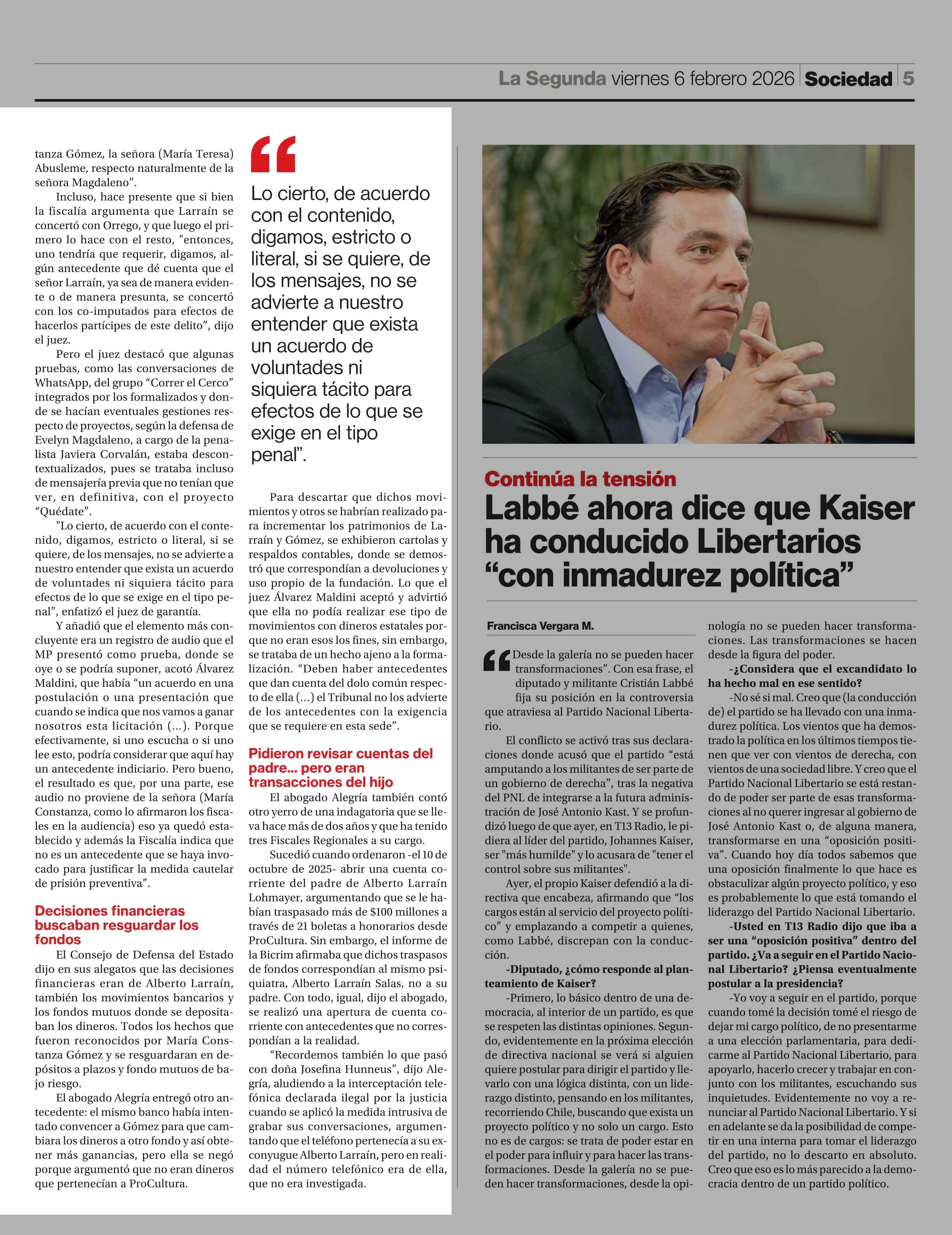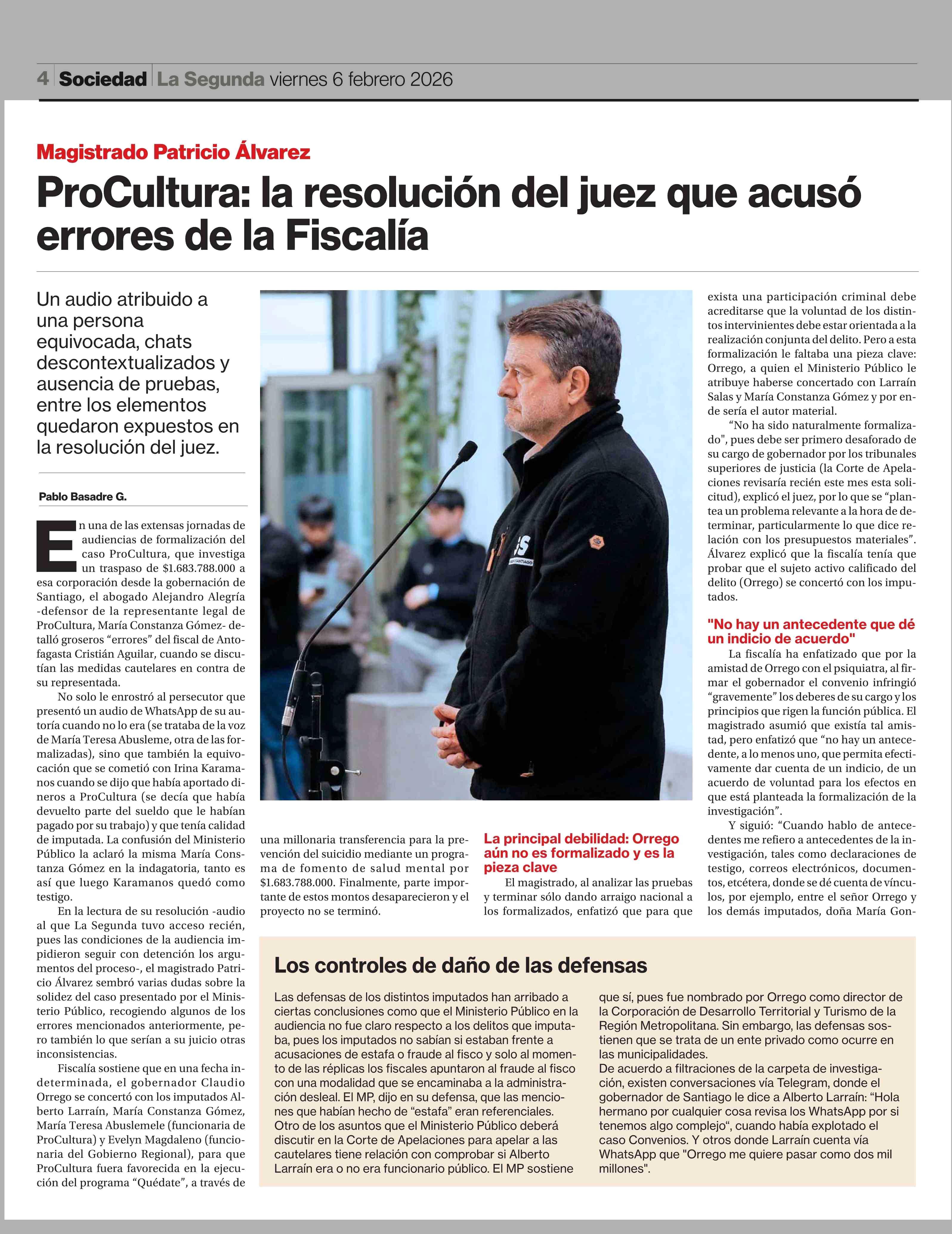 ProCultura: la resolución del juez que acusó errores de la Fiscalía 06-02-2026 La Segunda |
